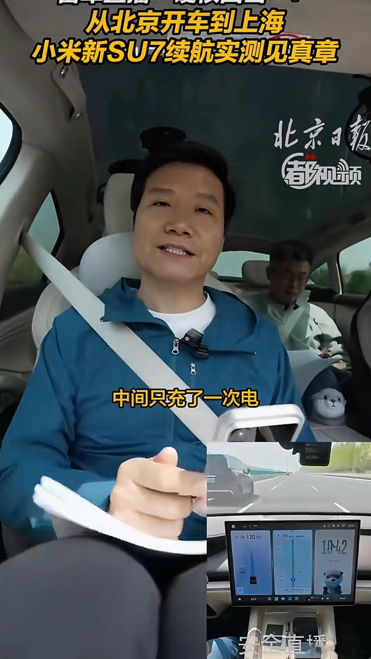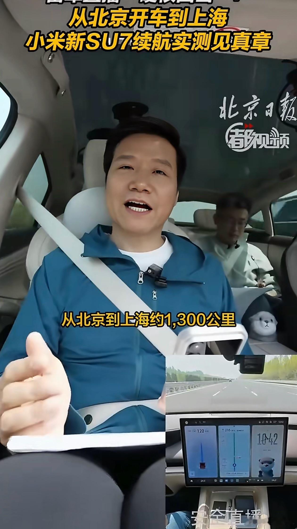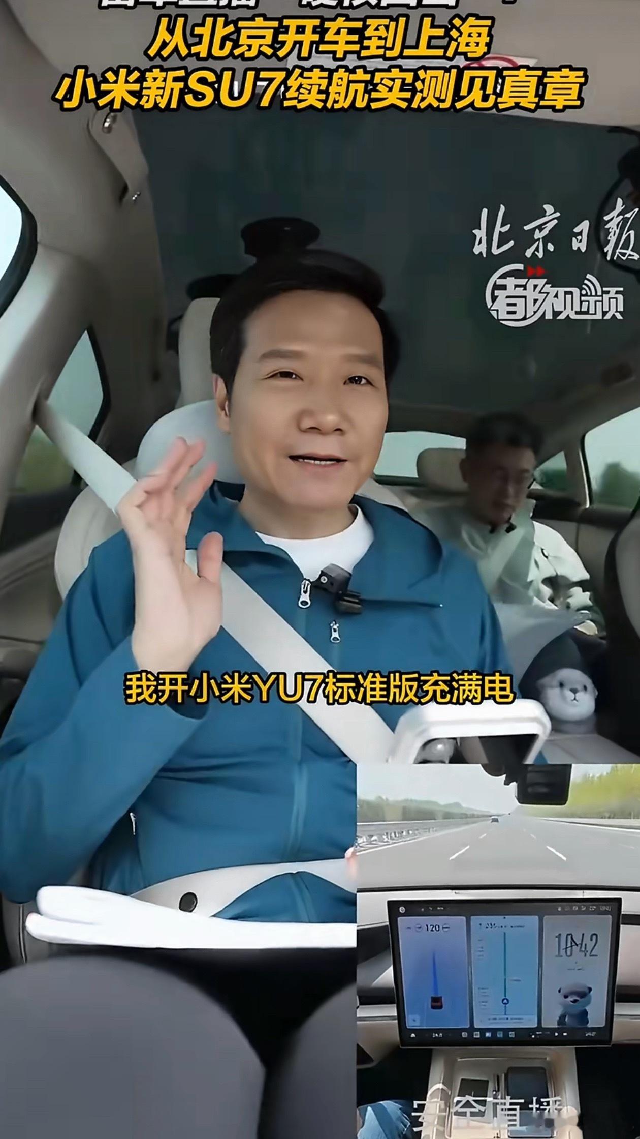 雷军问直播放歌有没有版权问题满电出发,北京到上海约1300公里,中间只充一次电。
