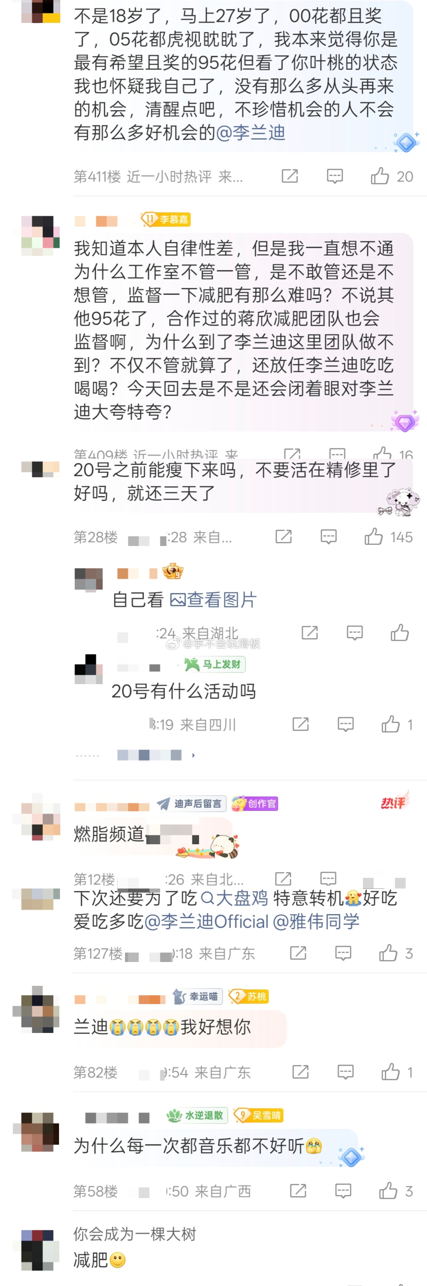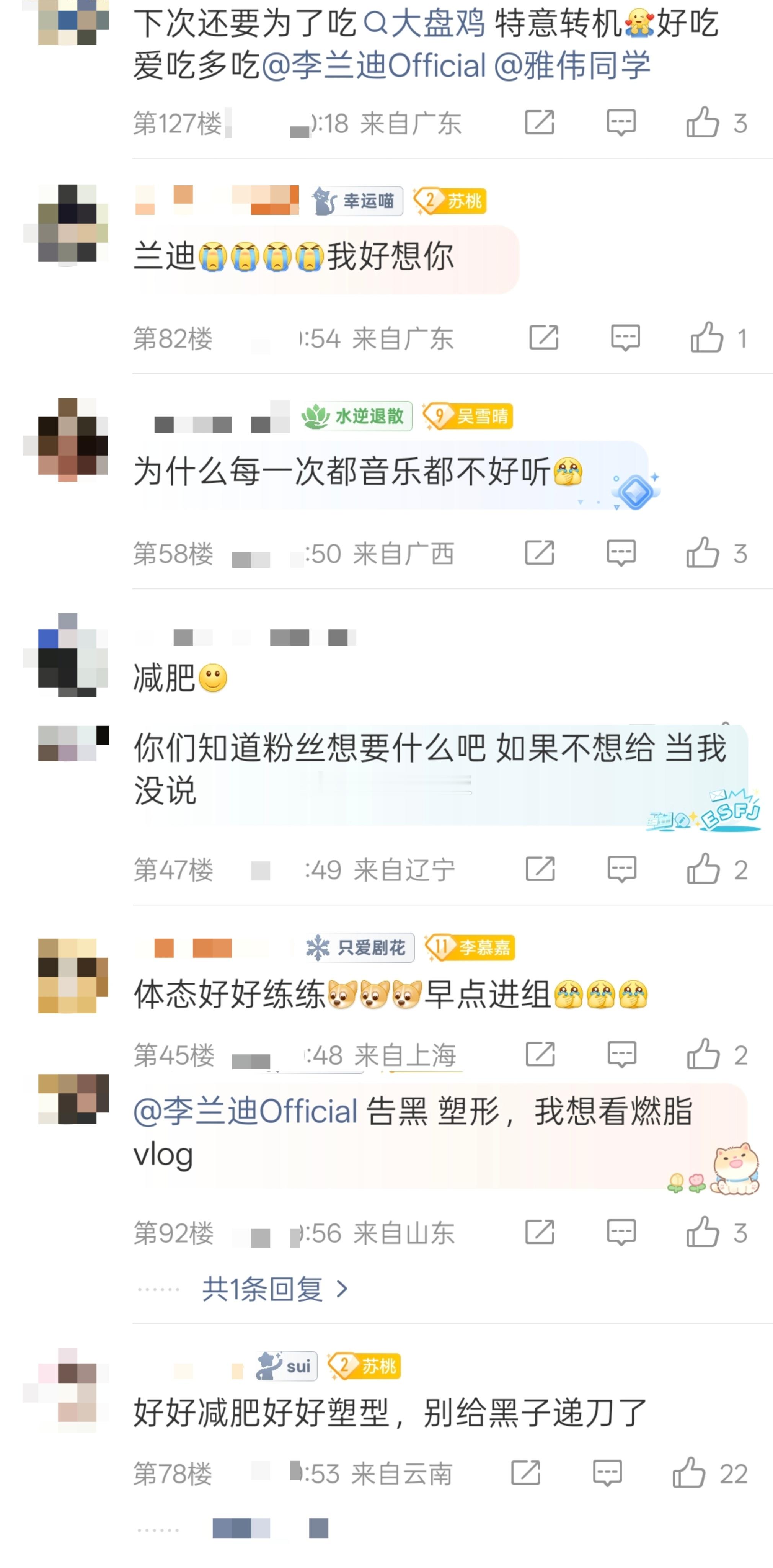 李兰迪今日活动状态遭粉丝吐槽太胖,评论区粉丝都在要求李兰迪减肥塑型,工作室多多督