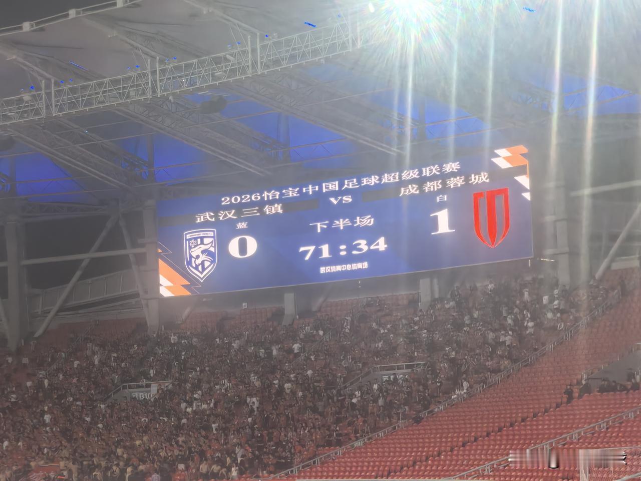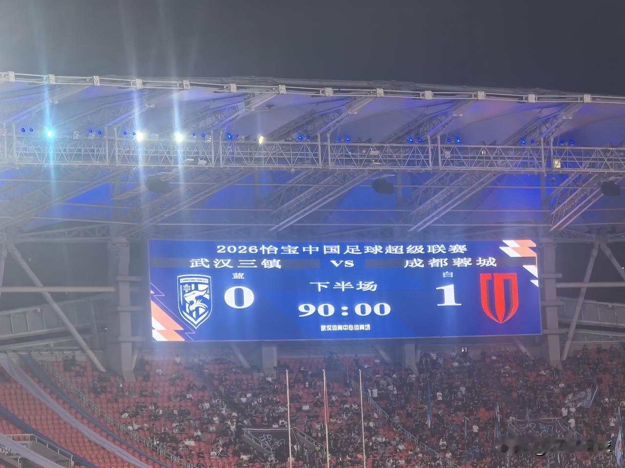 中超第六轮,武汉三镇主场0-1不敌成都蓉城。本场比赛三镇主教练莫拉对阵容做了较大调整,明天因伤缺阵,小将王康顶替。另一名年轻球员姜利勋出现在锋线位置在。整场比赛,武汉三镇队精神面貌焕然一新,拼劲十足,面对实力强大的对手,场面并不落下风。上半场三镇队角球导致费利佩手球,裁判视而不见未予判罚。第七十分钟,成都蓉城快速反击获得一个点球机会,罗慕洛主罚成都队取得领先。补时阶段,武汉三镇多次威胁对方大门,可惜未能抓住机会。