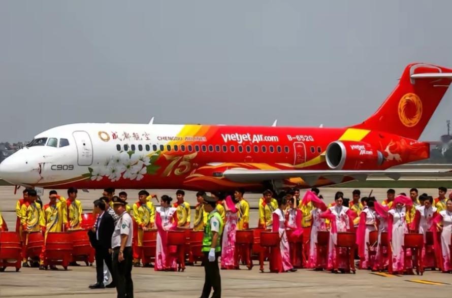 其实越捷和 C909 的缘分,早在一年前就开始了。2025 年 4 月,越捷就通过湿租的方式,从中国成都航空租了两架 C909,先在越南国内试运营。