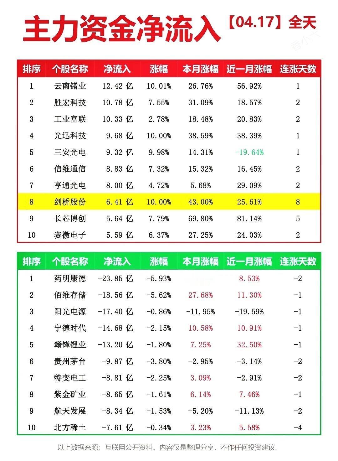 ⚠️【风险提示】以上内容仅为市场数据整理与分享,不构成任何投资建议。股市有风险,投资需谨慎,请勿据此进行任何交易操作。