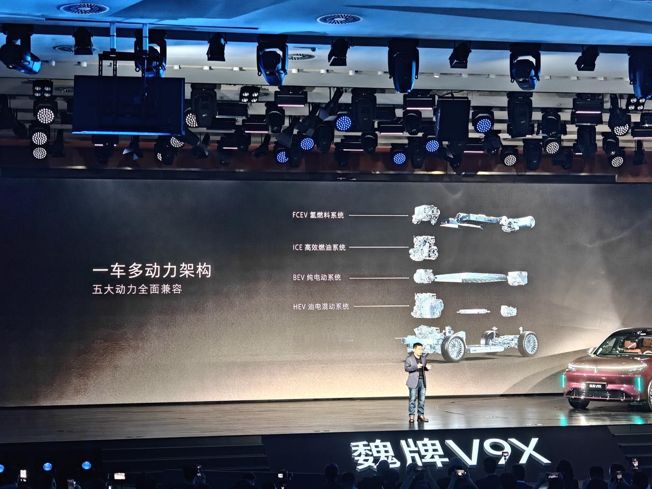 不过这场发布会最吸睛的不是魏牌V9X,而是该车所搭载的归元S平台。新平台以 “活字造车” 为核心理念,兼容燃油、混动、纯电、氢能等五种动力,核心零部件100%通用,支持多轴距与多尺寸,实现全域AI协同。