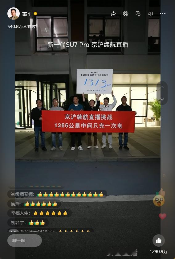 雷总腰真好,15个小时,全程直播。从北京到上海,满电出发中间只充一次电,挑战成功。