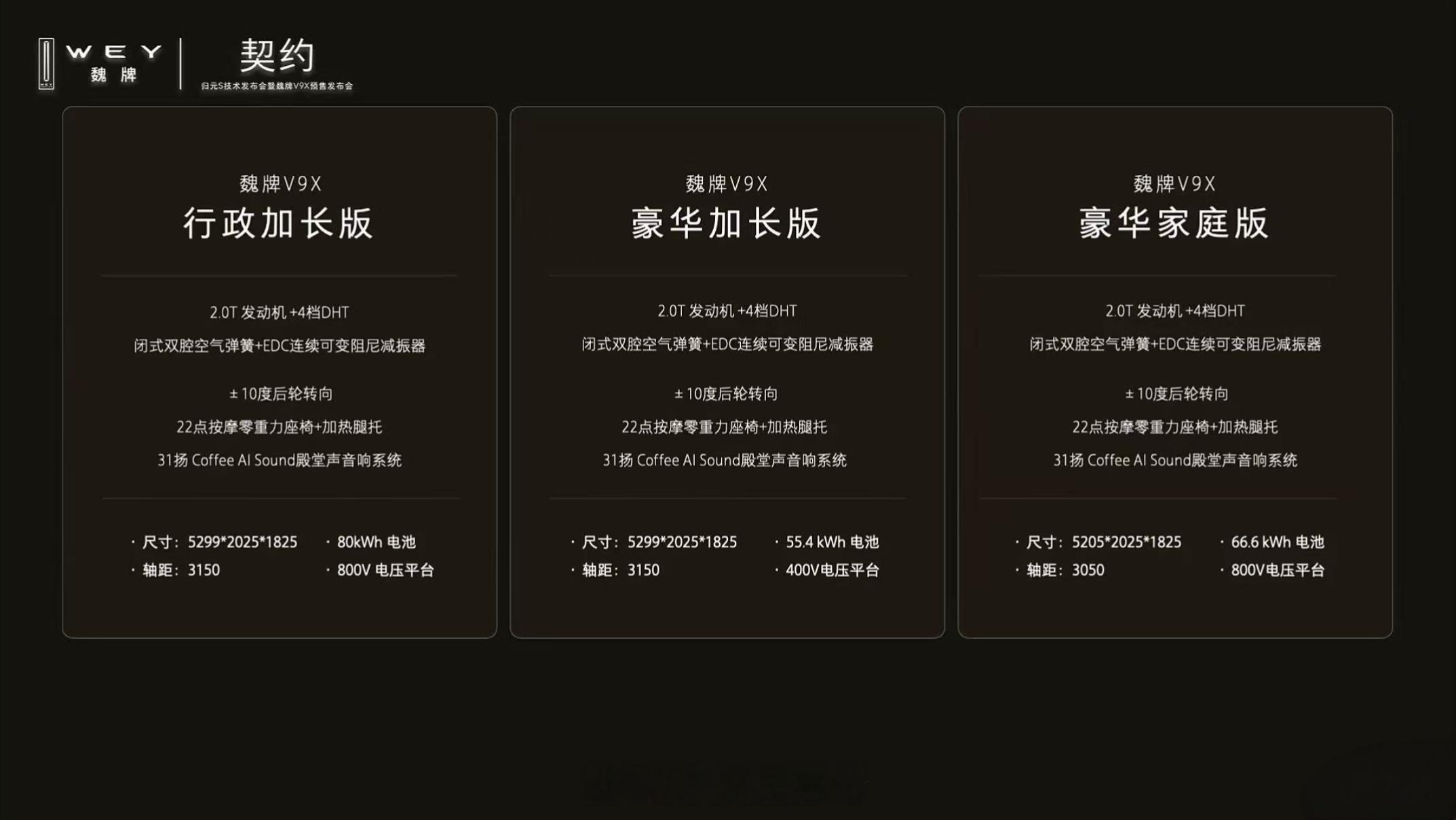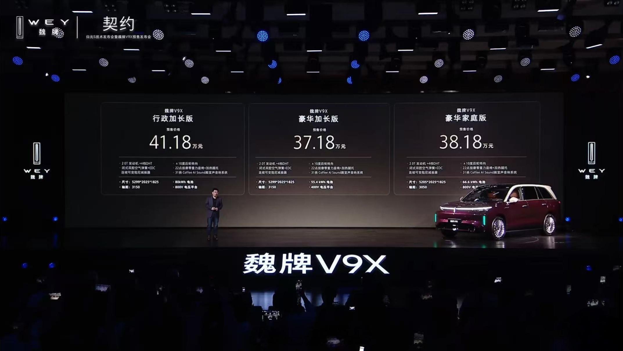 全新旗舰魏牌V9X开启预售37.18万起。以”AI豪华六座旗舰”定位的,尺寸5299mm x 2025mm x 1825mm,轴距3150mm,采用2+2+2六座布局,空间表现不俗。
