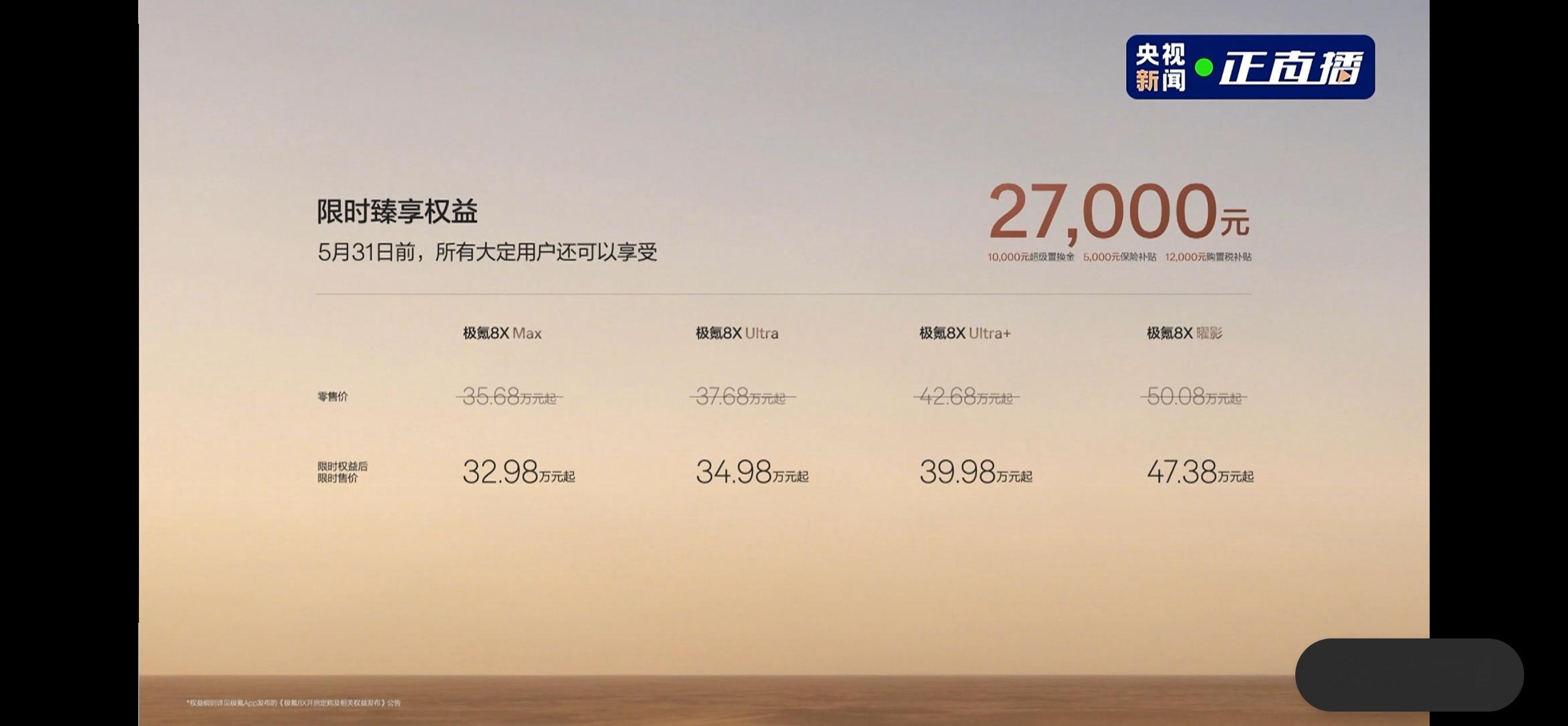 极氪8x 这波太给力5月31前大定用户享限时2.7万官方补贴