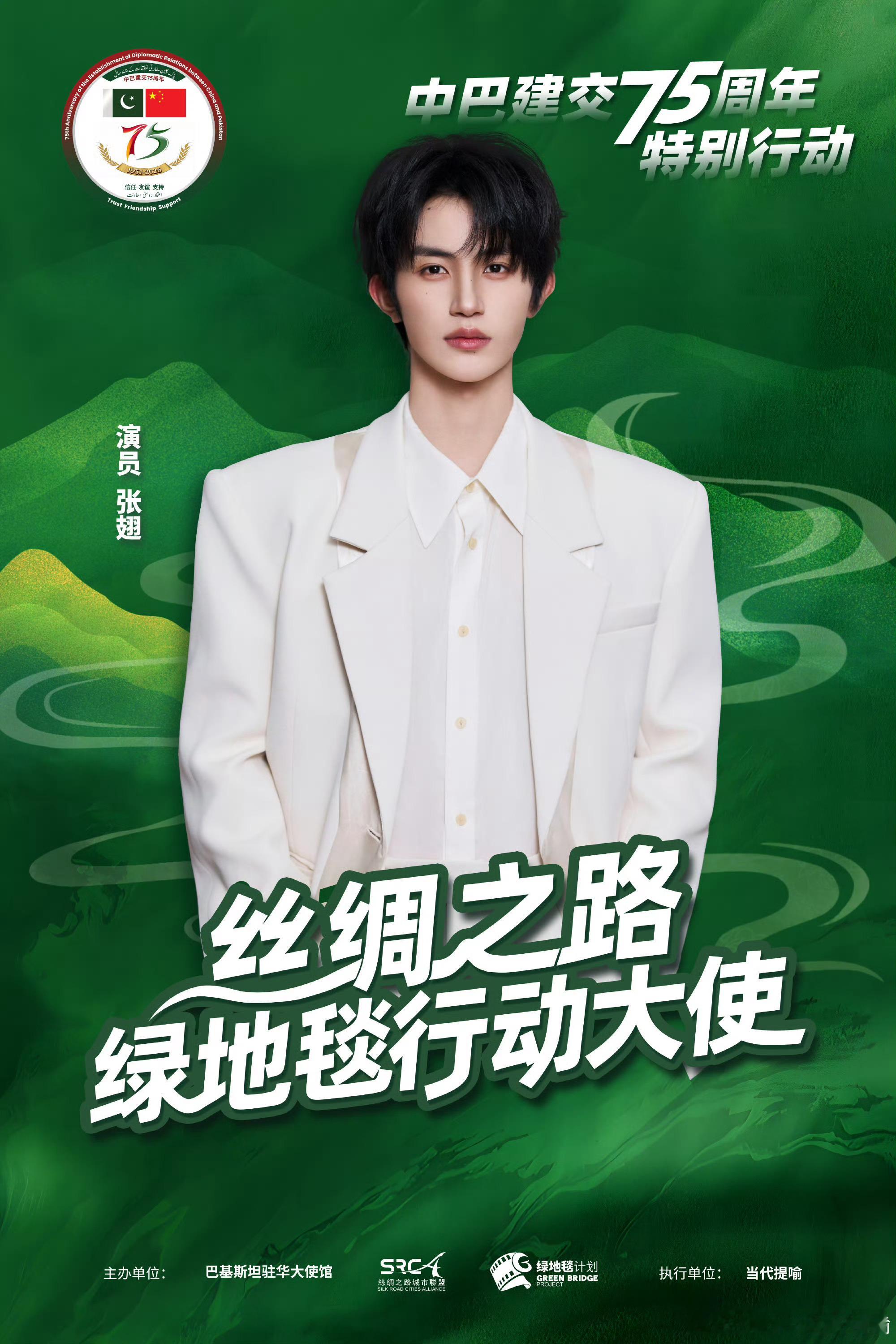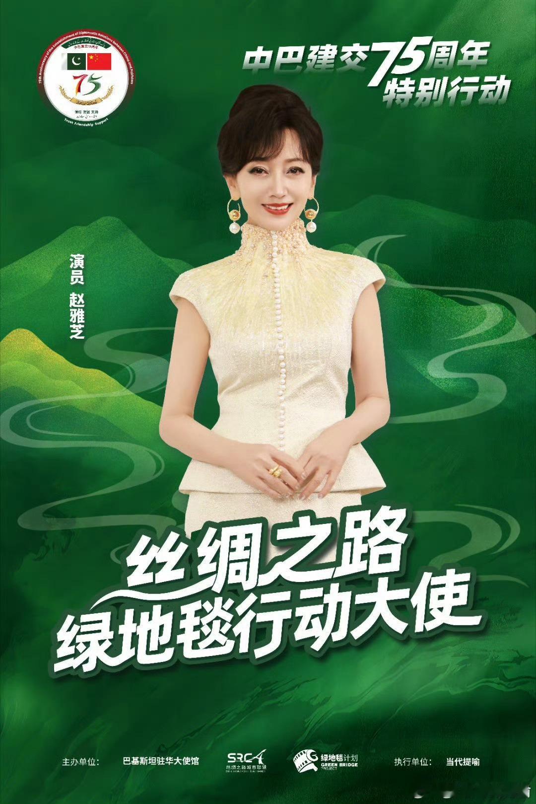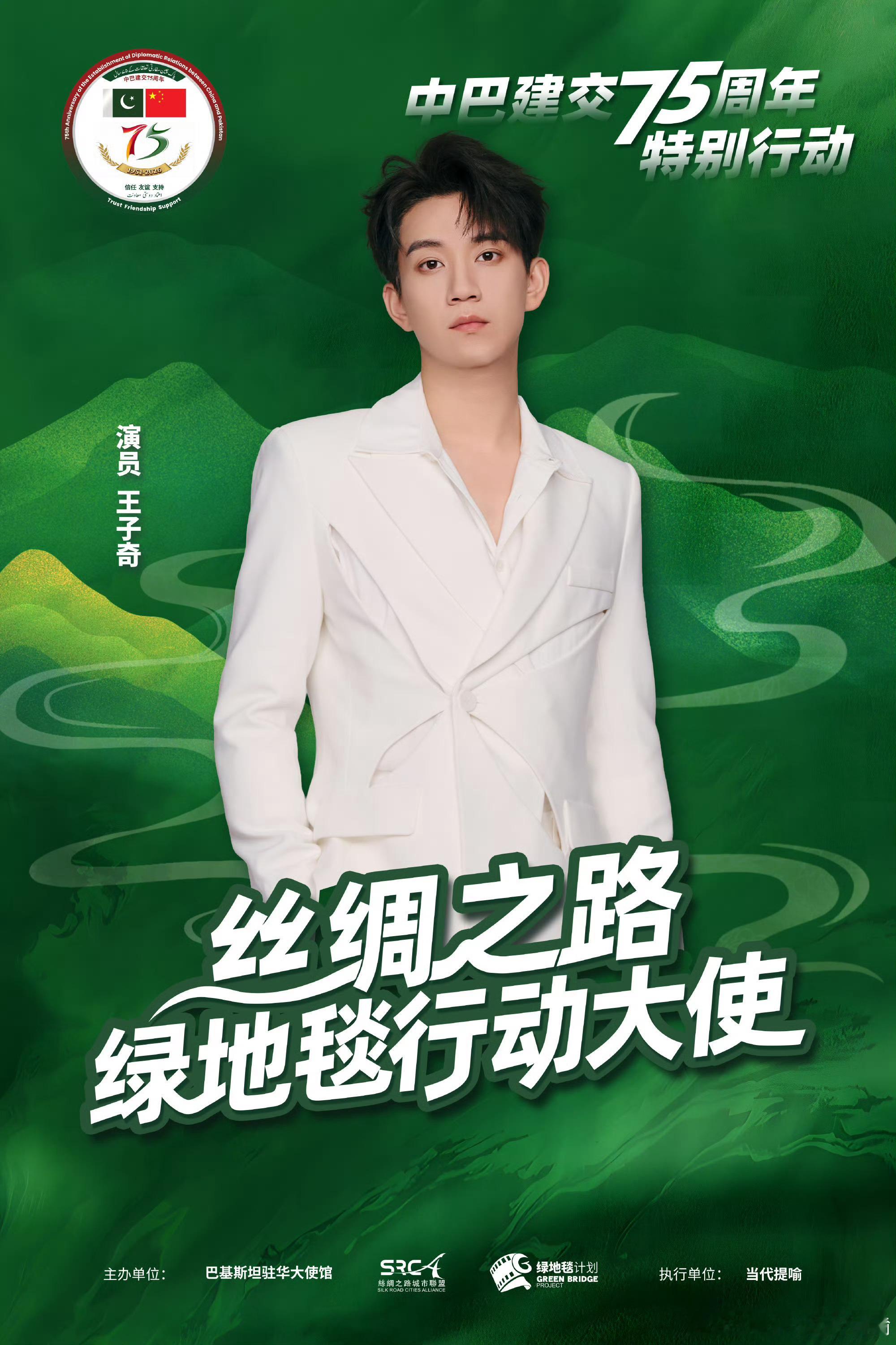 为纪念中巴建交75周年,演员王子奇、张翅、赵雅芝共同受邀担任“丝绸之路绿地毯行动大使”,出席特别行动“为喜马拉雅种棵树”公益活动。三人以特邀行动大使身份,与巴基斯坦驻华大使等中外嘉宾一同栽种象征中巴友谊长青的松树,助力生态保护与绿色合作,共建中巴绿色友谊走廊。