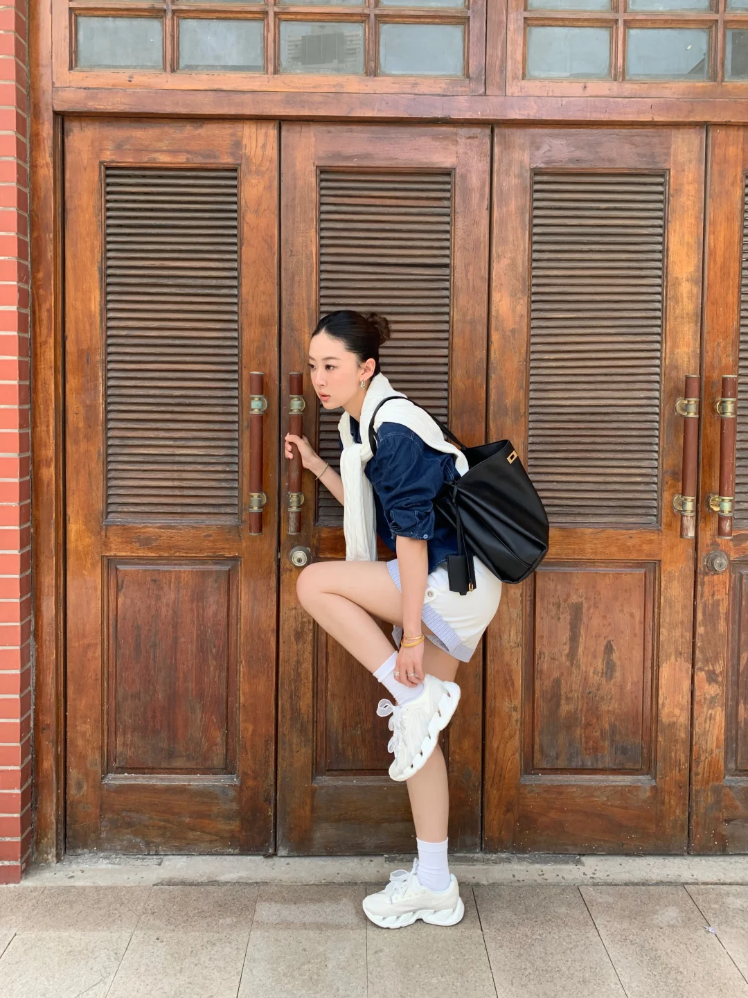 脚下的FILA VETTA V头鞋,是整套造型的灵魂