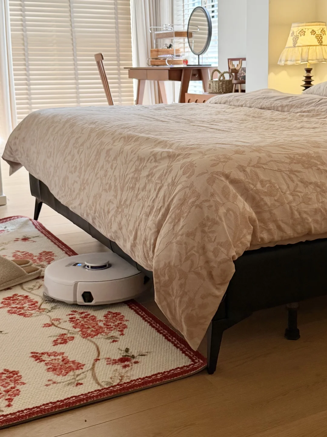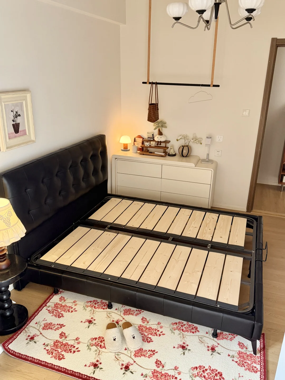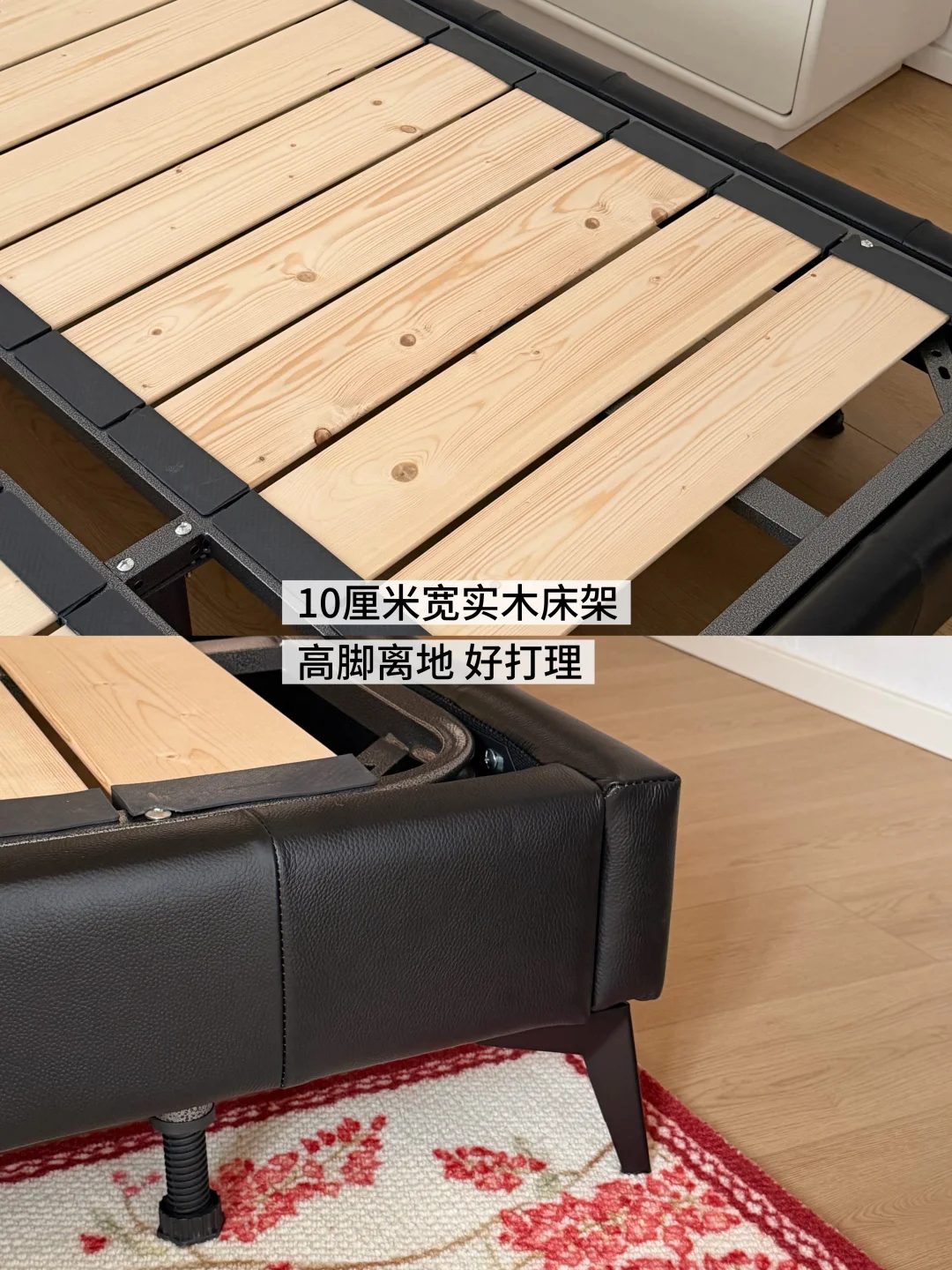 最戳我的是15cm高脚设计,扫地机器人能自由进出床底,再也没有卫生死角,懒人真的狂喜!全实木边框+松木排骨架,稳得一批,怎么晃都不晃,安全感直接拉满。