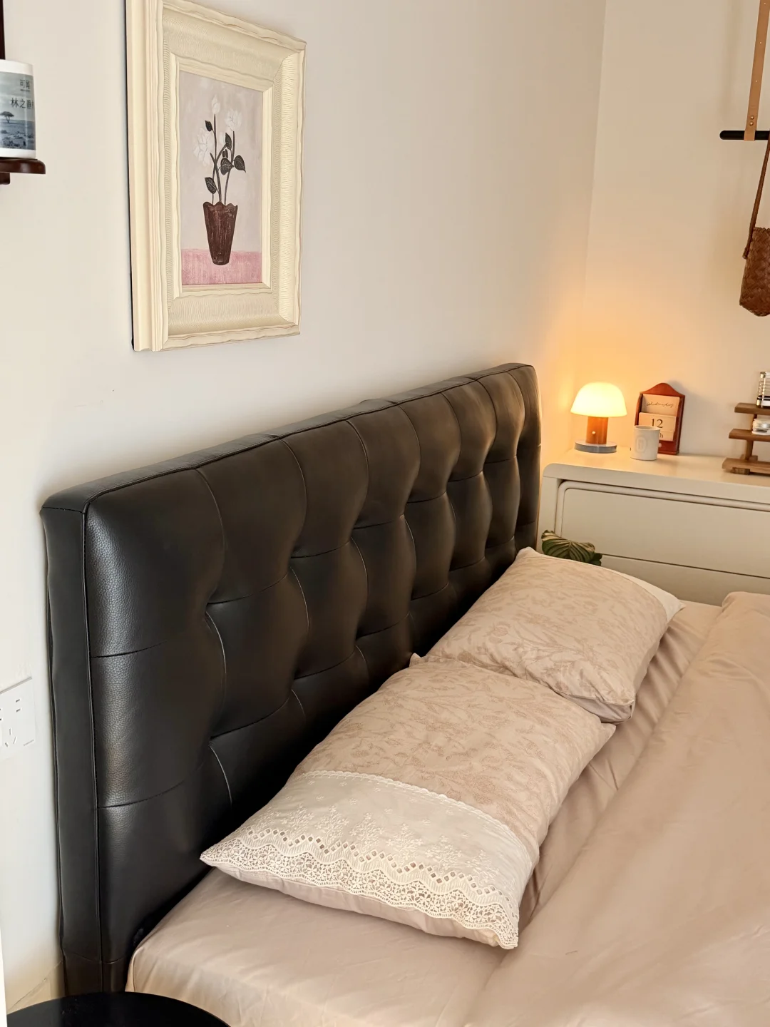 1.8×2m的尺寸,却完全不压空间,超薄床头+齐边设计真的是小户型救星,把每一寸空间都利用到极致,再也不用为了省空间牺牲舒适度。