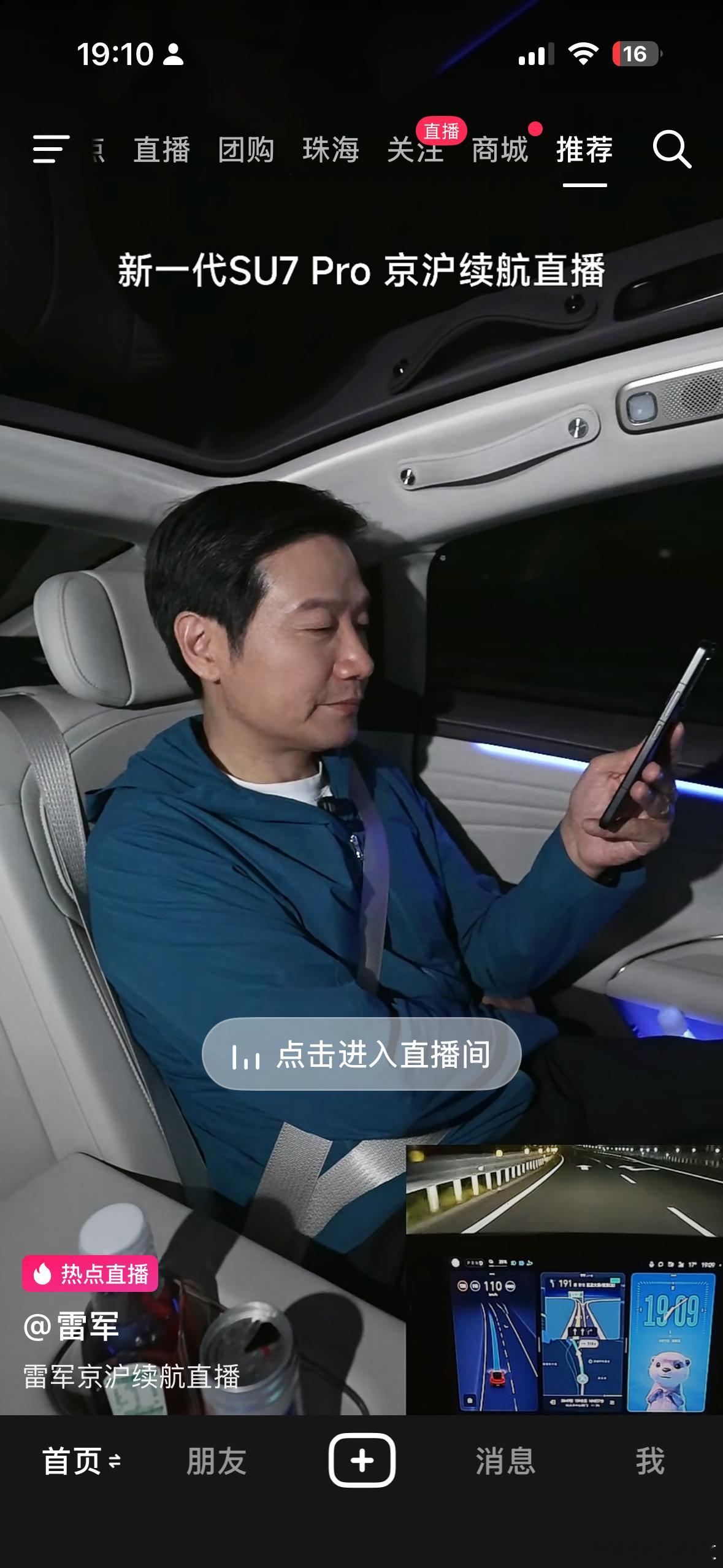 雷军京沪高速测试直播。三个人+摄影设备,顶着高速限速开,电耗才15.6,强的