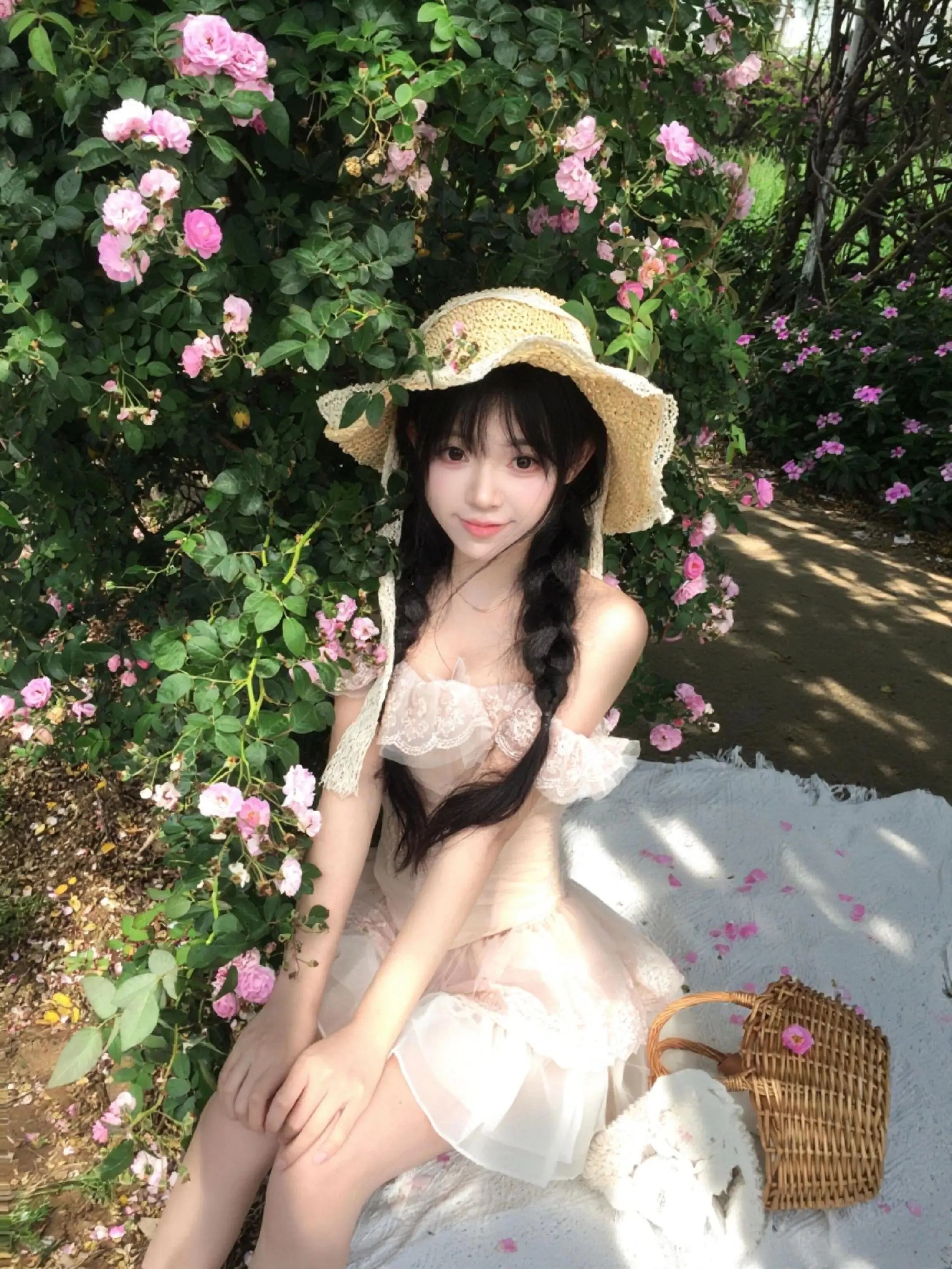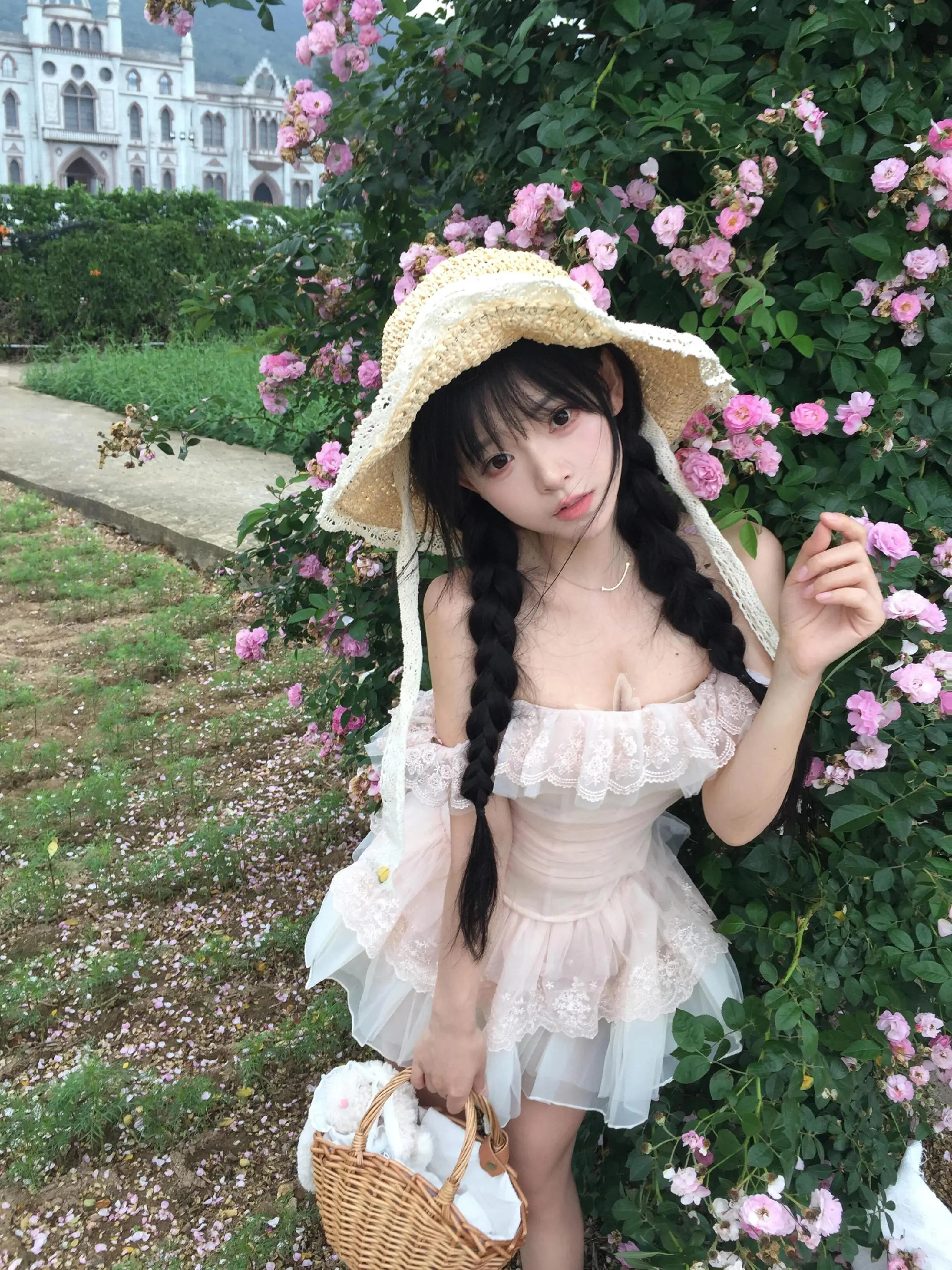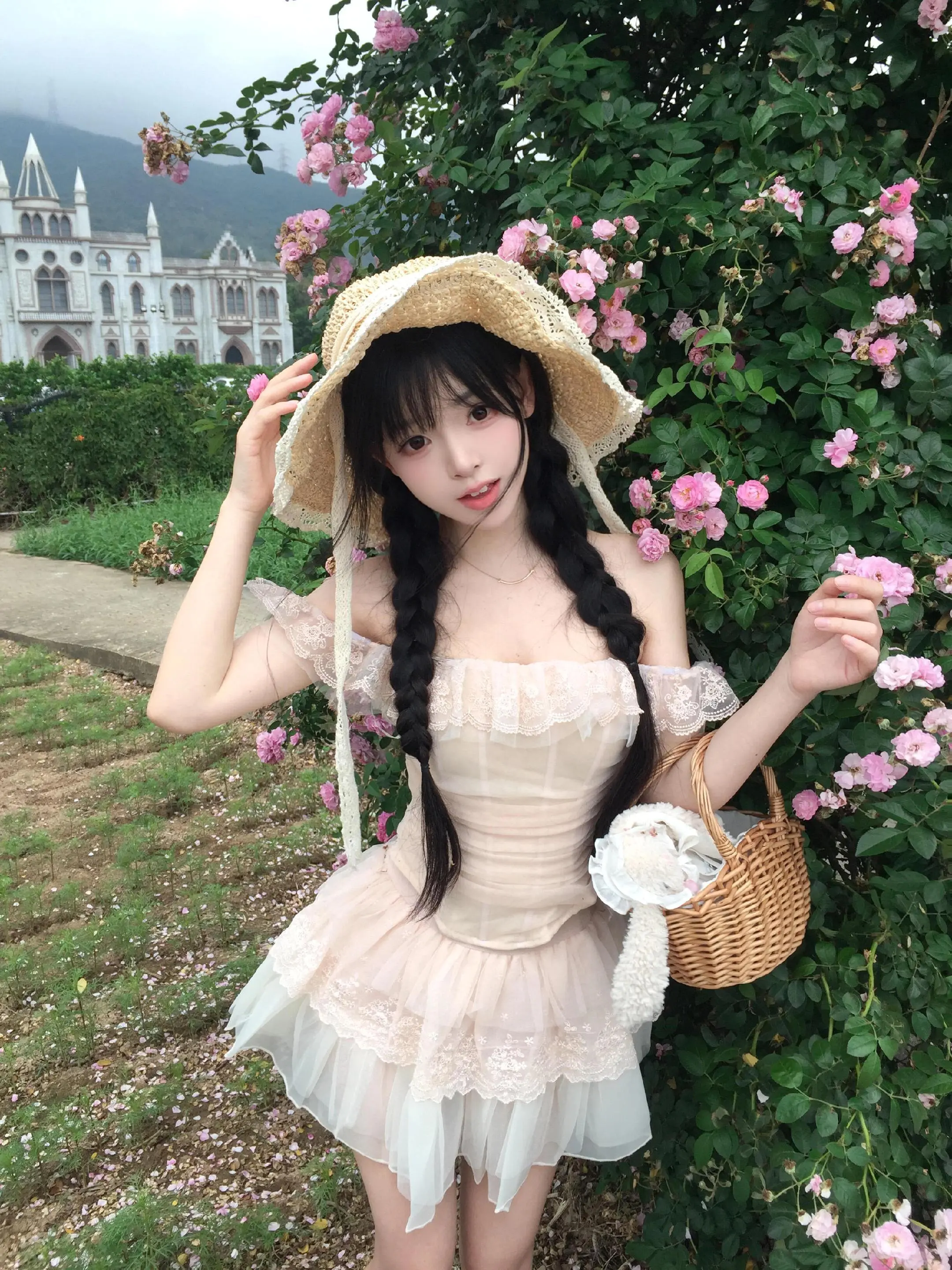 白色蕾丝蓬蓬裙 少女感 甜妹 白裙子 花与少女