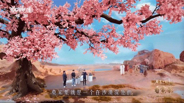 主持人撒贝宁带队,和影评人、电影主创组成“镖团”,用XR技术在演播室里1:1还原了大漠里的桃花源场景。
