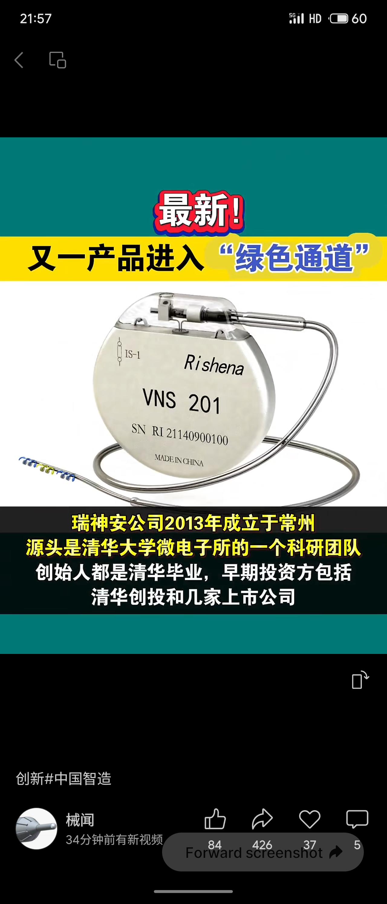 2026年4月15日,常州瑞神安医疗器械有限公司申报的“植入式神经刺激片状电极”被国家药监局纳入优先审批“绿色通道”。该公司2013年成立于常州,源自清华大学微电子所科研团队,创始人均为清华毕业生,早期获清华创投等投资。产品覆盖癫痫、疼痛、帕金森等功能神经外科适应症,片状电极是其核心耗材。