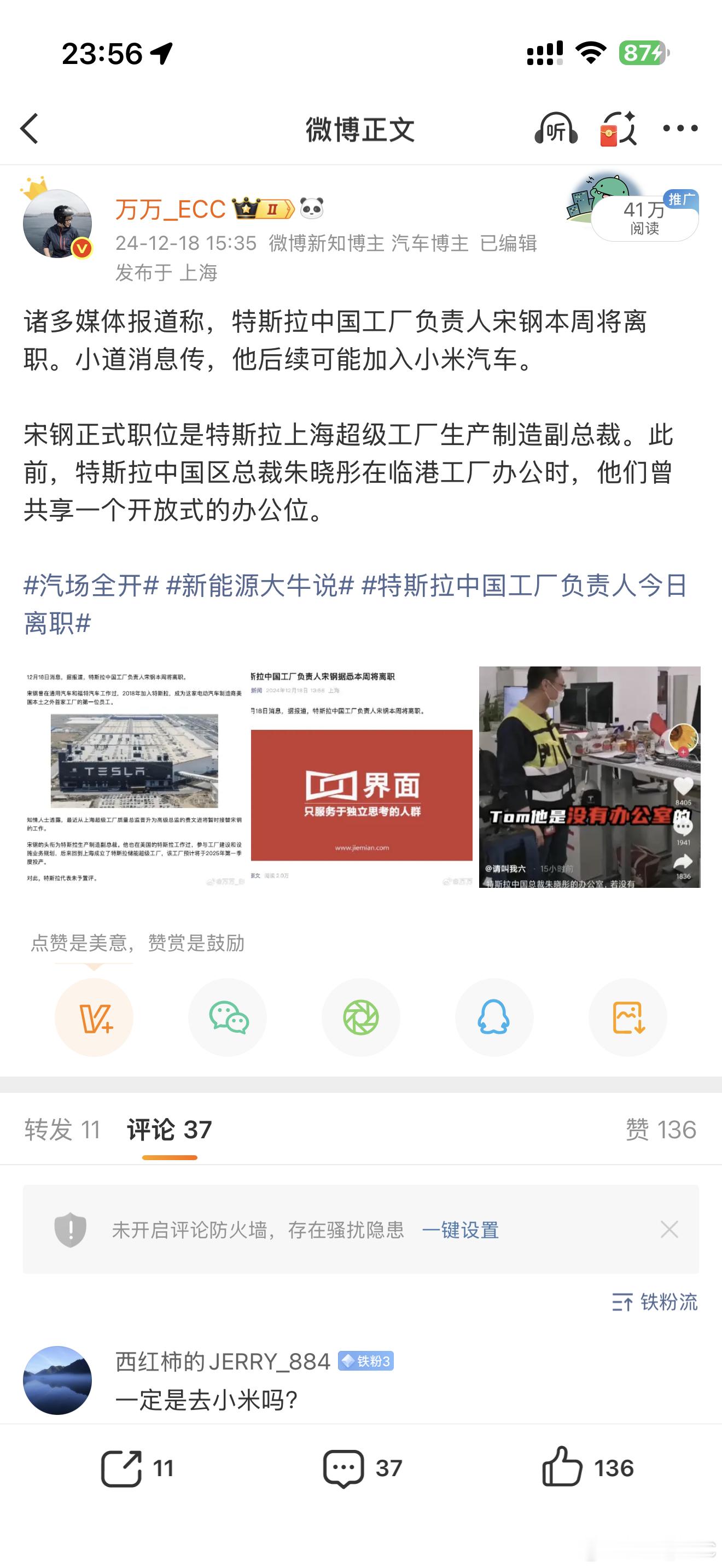 24年12月,作为特斯拉中国一号员工的他,从特斯拉离职,当时有小道消息传,他可能加入小米汽车,结果后来证实入职远景能源担任供应链VP。