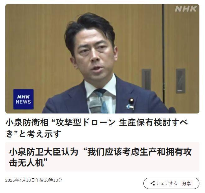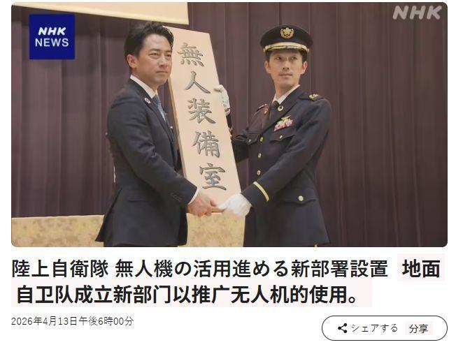 4月18日,据央视新闻直播间报道,近日,日本防大臣小泉进次郎在新成立无人装备仪式上称,他希望新设无人装备部门,打造新的作战方式,能变成为全球最善用无人装备组织。