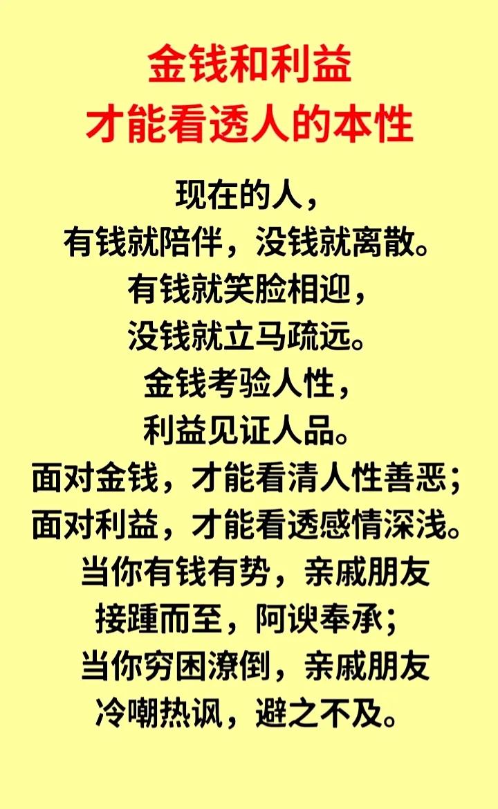 人人拜金的社会 感情不如钱珍贵 风光无限众人陪 狐朋狗友一大堆 落难之时还剩谁