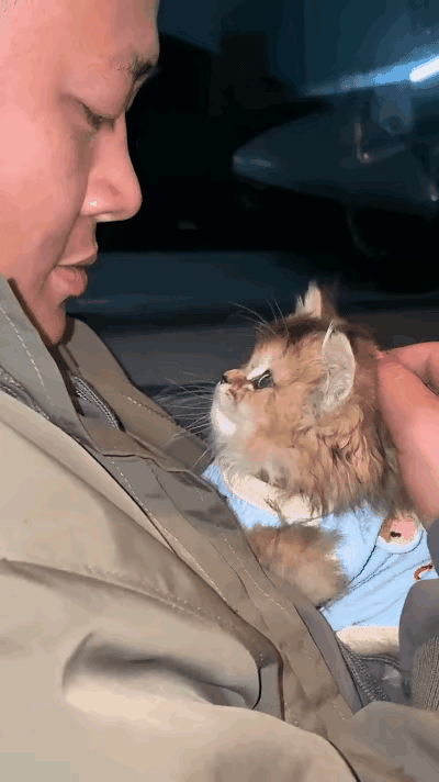 小猫咪成精了,行为举止像个人一样,表情也很到位,看得出来它已经把这个男子稳稳的拿捏住了。