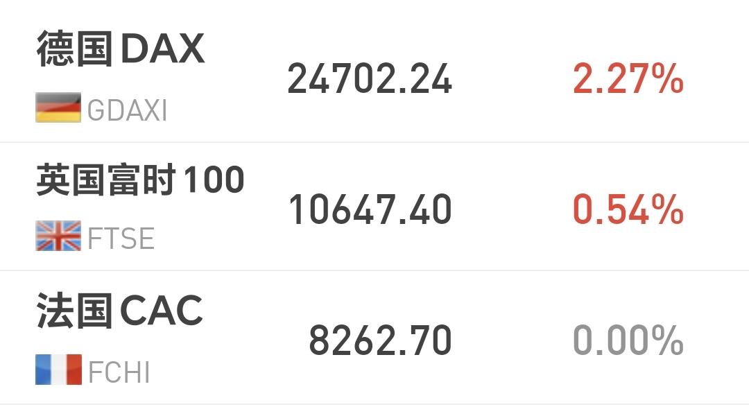 欧洲市场昨天晚上上涨,德国上涨了2.27%,英国上涨了0.54%,法国收的是一个平盘,除了德国,上涨幅度都不是很大。
