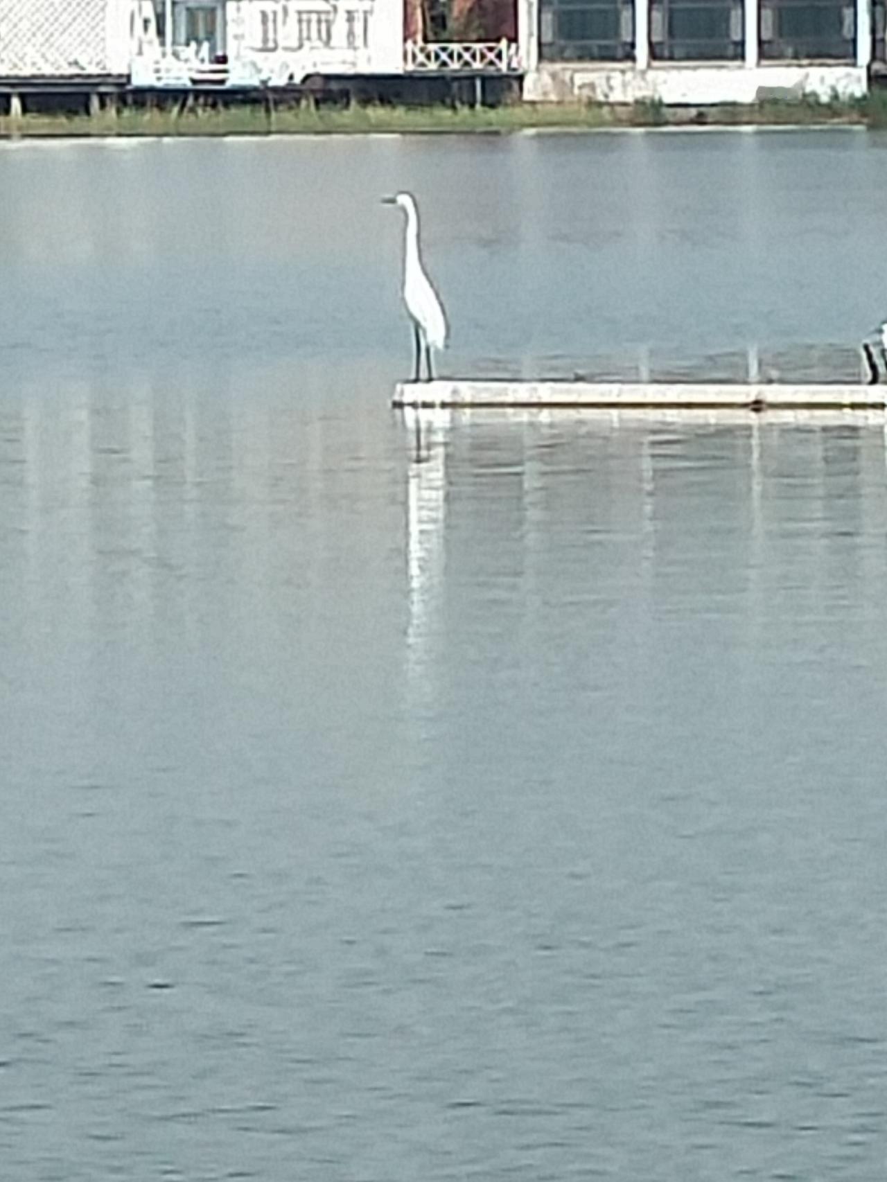 鸢都湖喷泉上,飞来多只云游野鹤。
