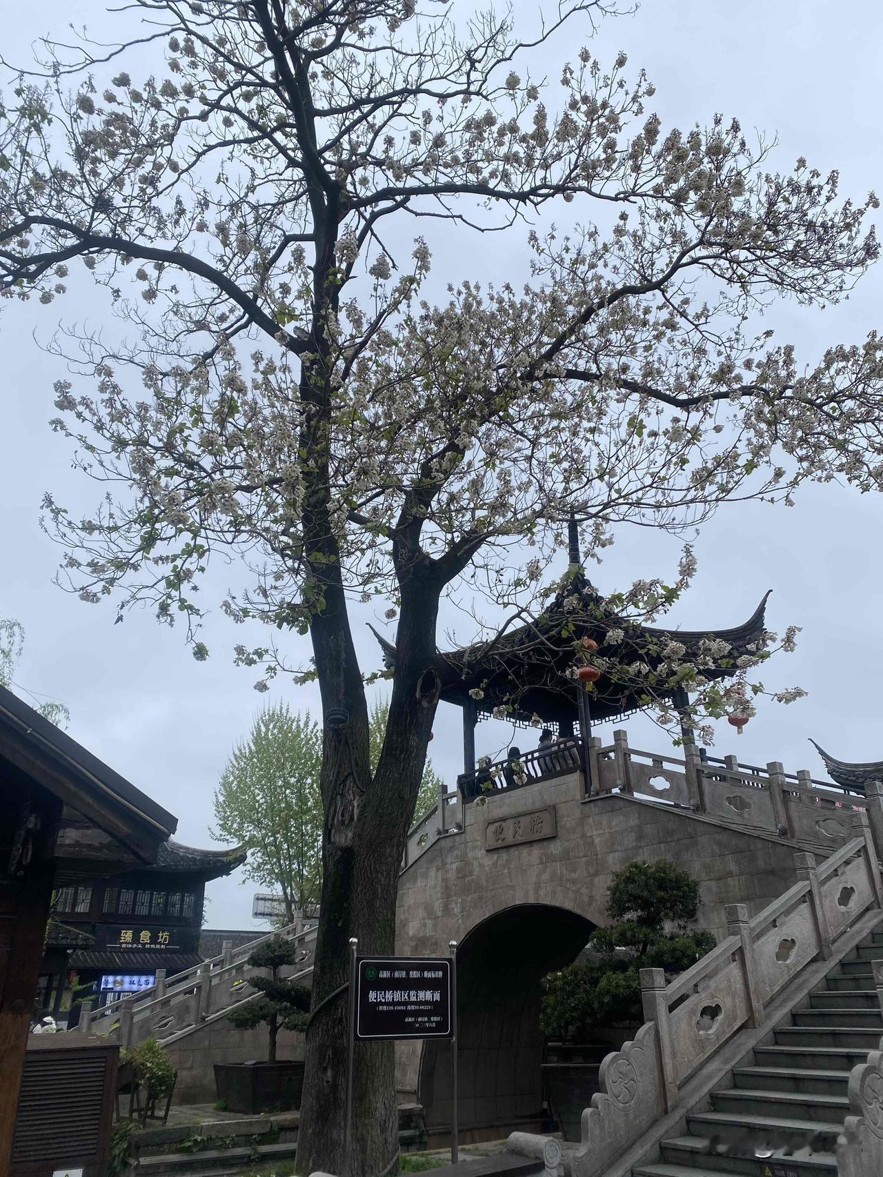 图5是小店边上的风景,开花的是什么树?白色的花朵很美很香。