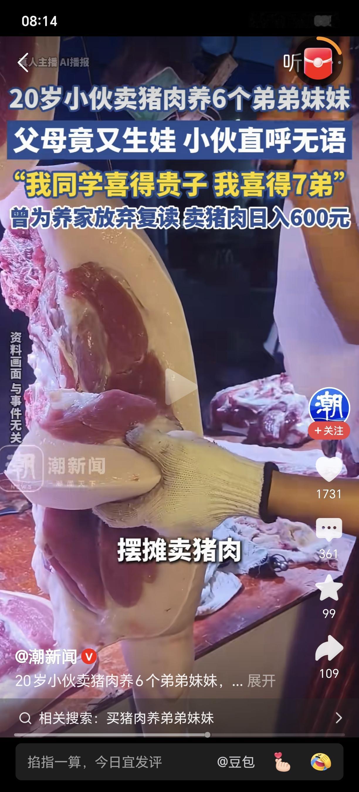 无语了!20岁小伙卖肉养6弟妹父母又生娃!刚看到一个新闻,湖南一个小伙子,刚刚满