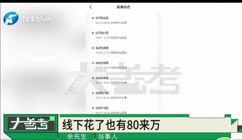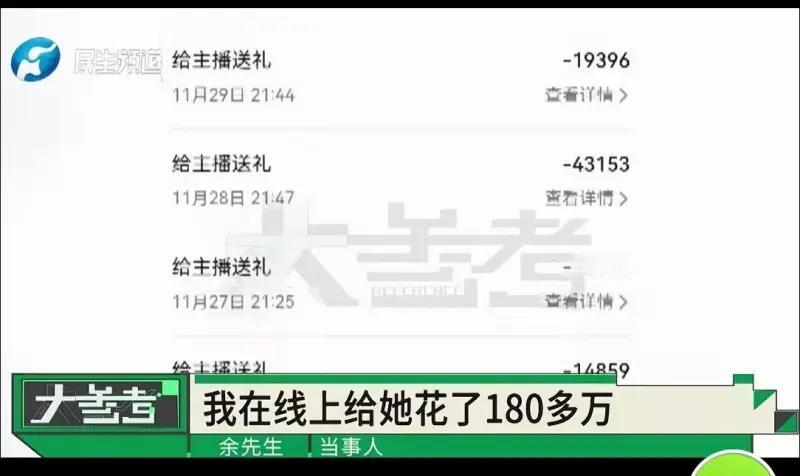 4月9日,四川40岁离异男子余先生向记者爆料,称自己被一名女主播欺骗,线上打赏180多万、线下约会花费80多万,累计近300万,原本奔着结婚而去,却发现对方隐瞒关键信息。余先生去年刷到该女主播后疯狂打赏,刷够60万换来第一次约会,半年内共约会4次。他多次谈及结婚均被拒绝,后调查得知,女主播1985年生,竟有一个20岁的女儿,且从未想过嫁给他。余先生认为自己被骗,希望追回打赏,记者联系平台后,客服表示会深入调查,但他追回钱款的可能性不大,我觉得,这个男人太幼稚了!还是怪自己!