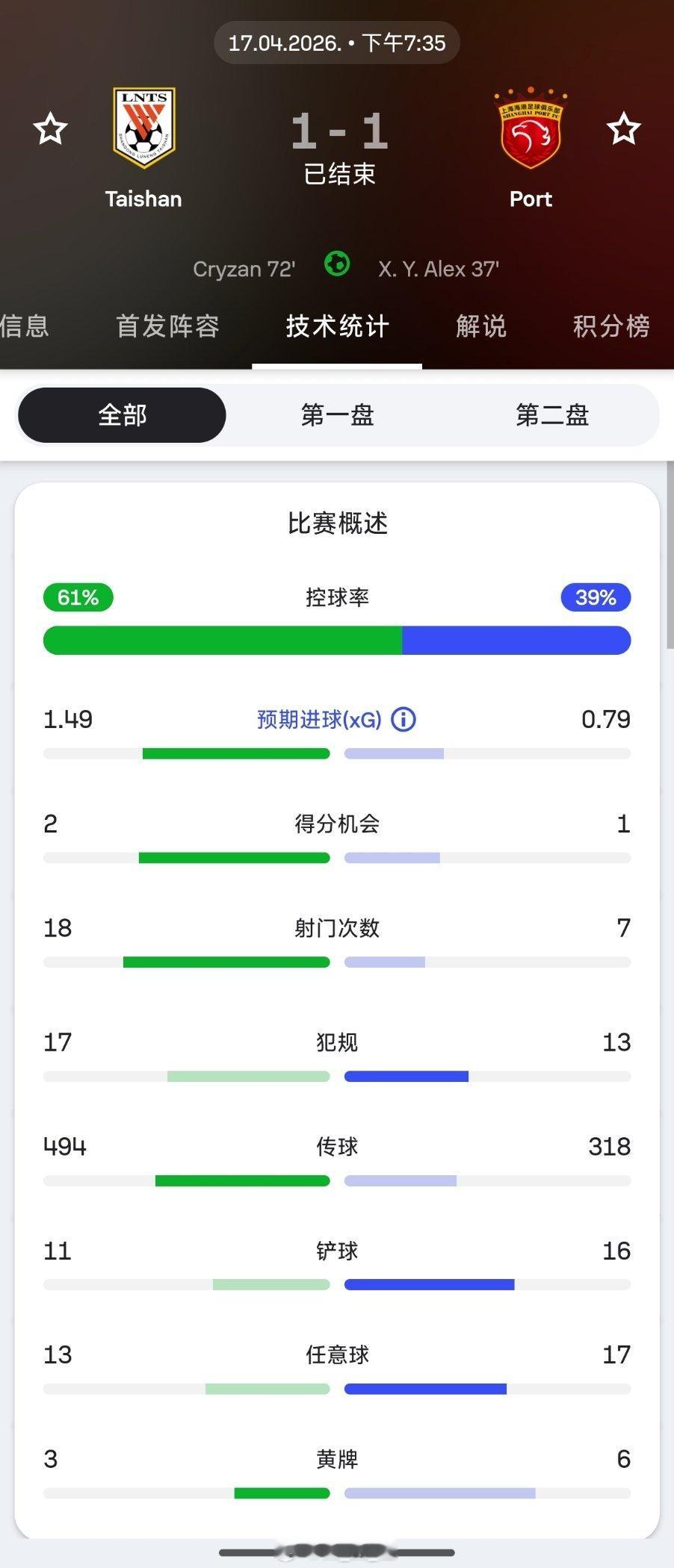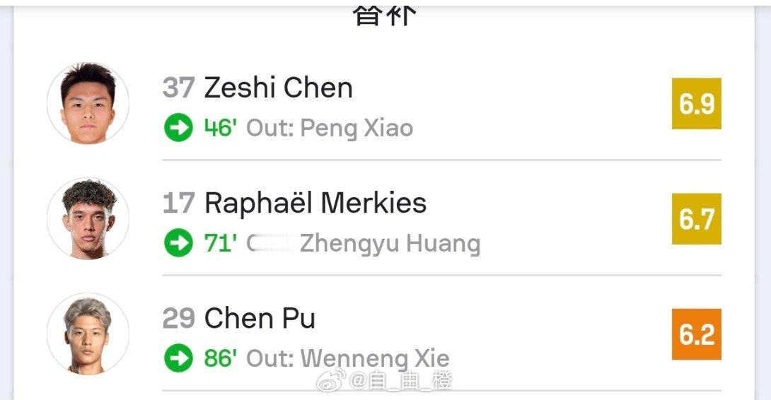 Sofascore赛后评分以及技术统计自由橙山东泰山