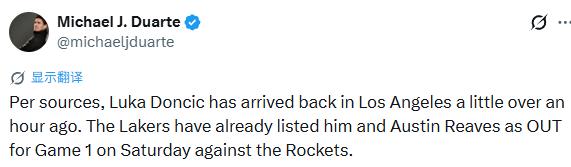 湖人记者Michael J. Duarte报道:据消息人士透露,卢卡-东契奇在大约一个多小时前已经抵达洛杉矶。
