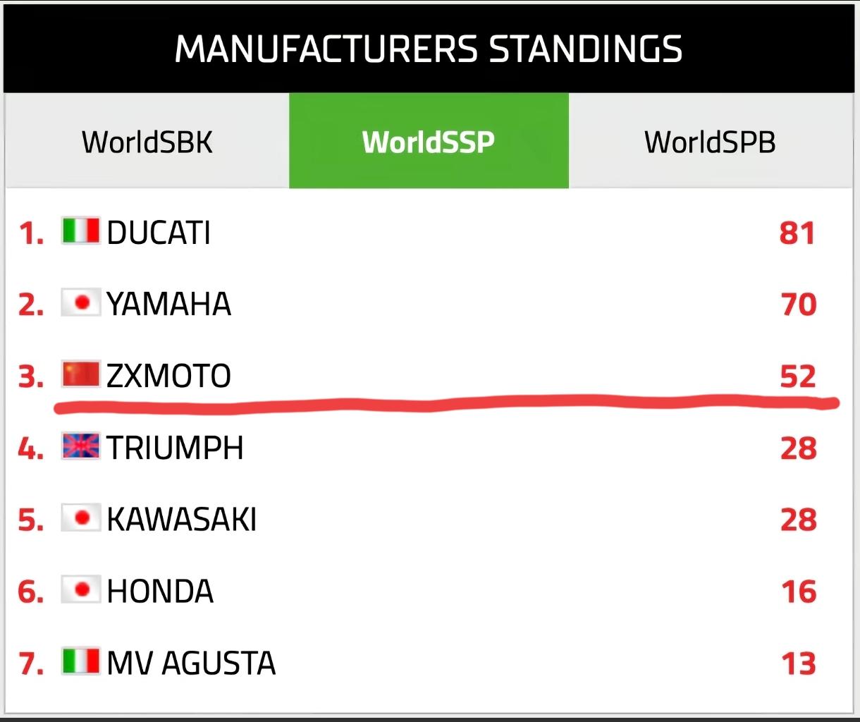 反观杜卡迪、雅马哈这两站比赛,虽然没有张雪机车异军突起的那么耀眼,但是始终稳定发挥,没有失误,所以总积分很高。