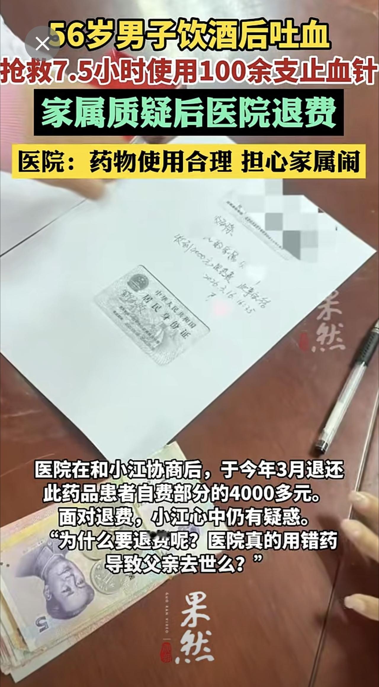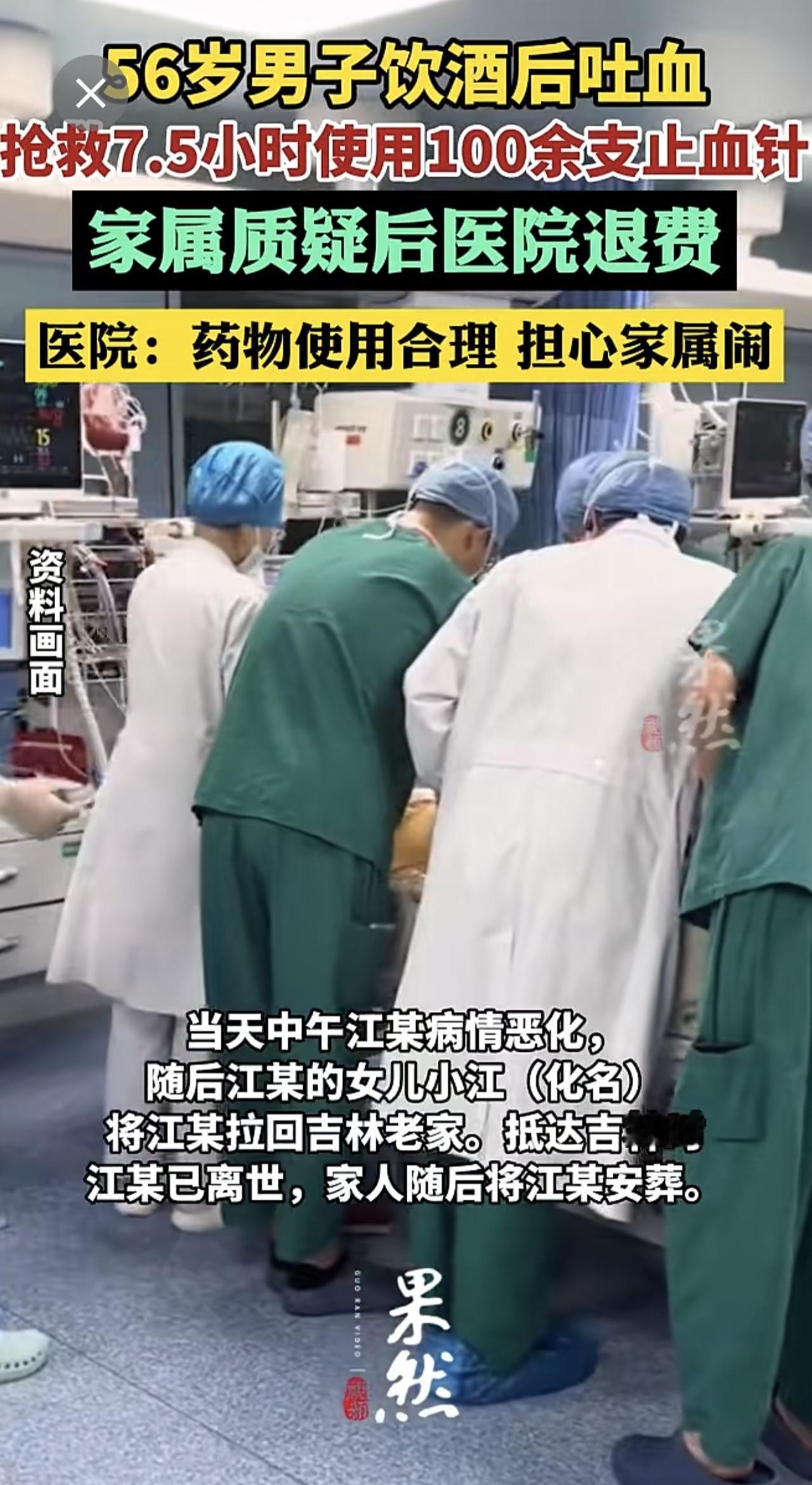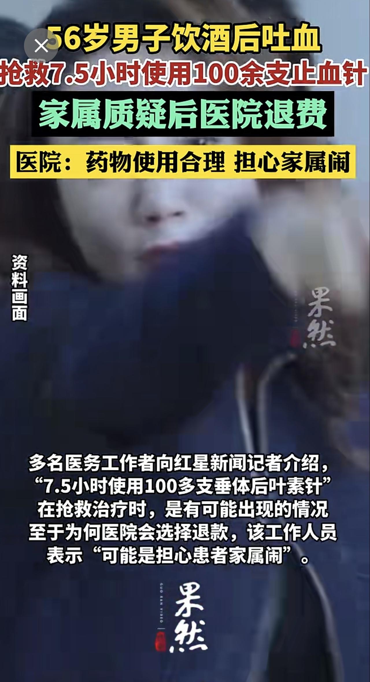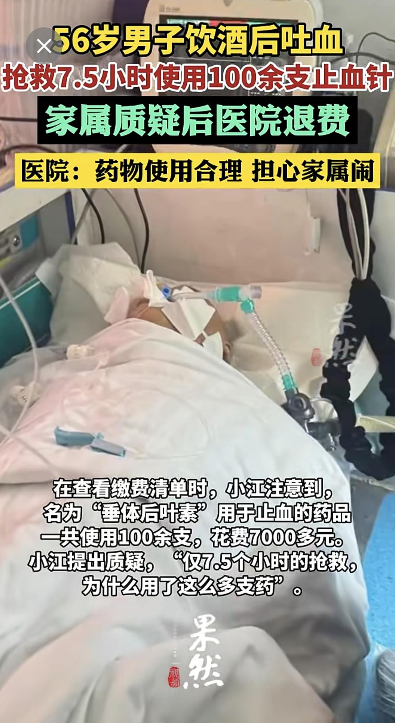男子抢救7.5小时使用100余支止血针,家属质疑后医院退费,医院工作人员:药物使