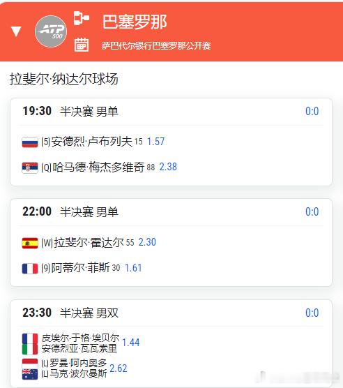 男单可关注两位天才球员的半决赛,ATP巴塞罗那22点 菲斯🇫🇷vs霍达尔🇪🇸