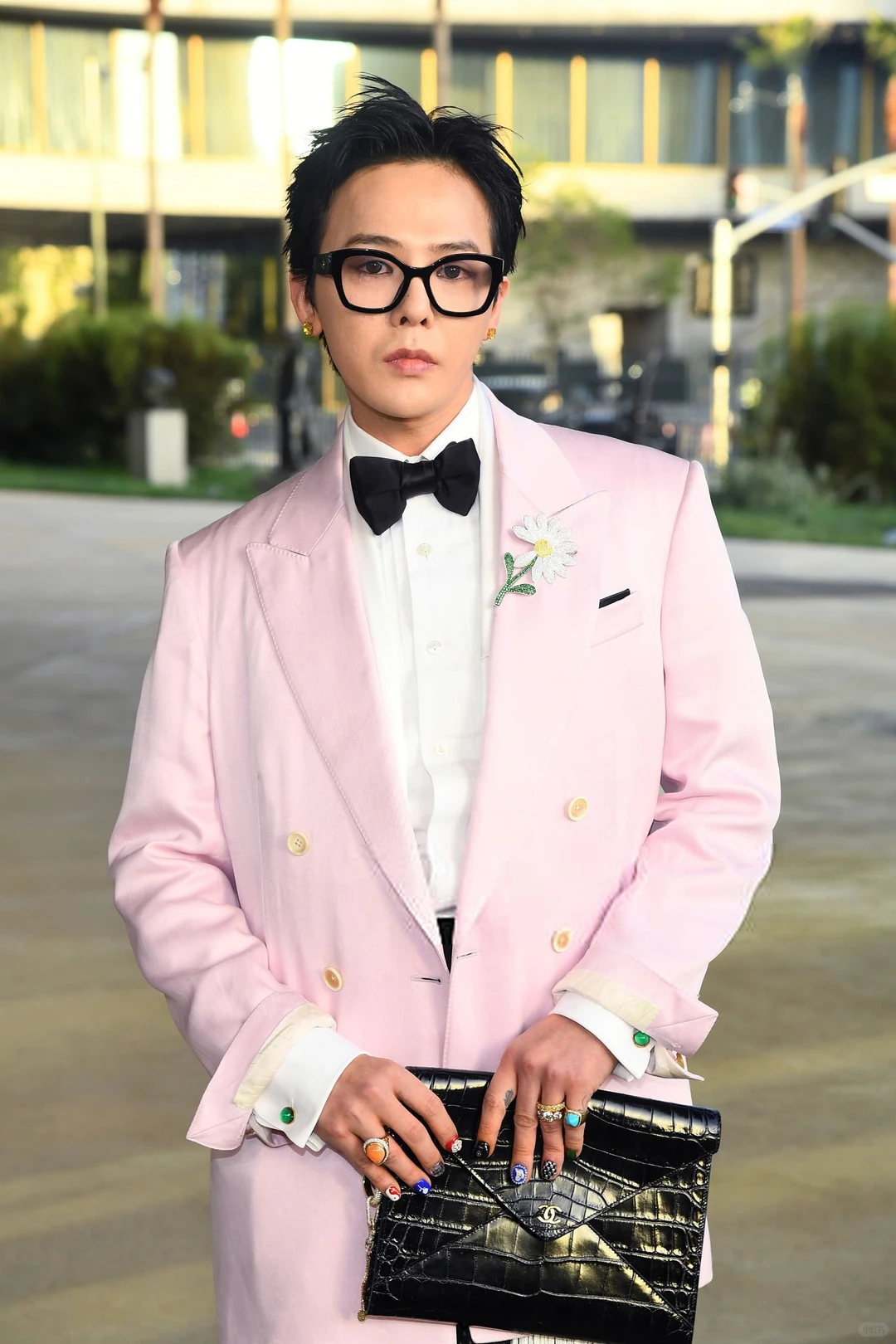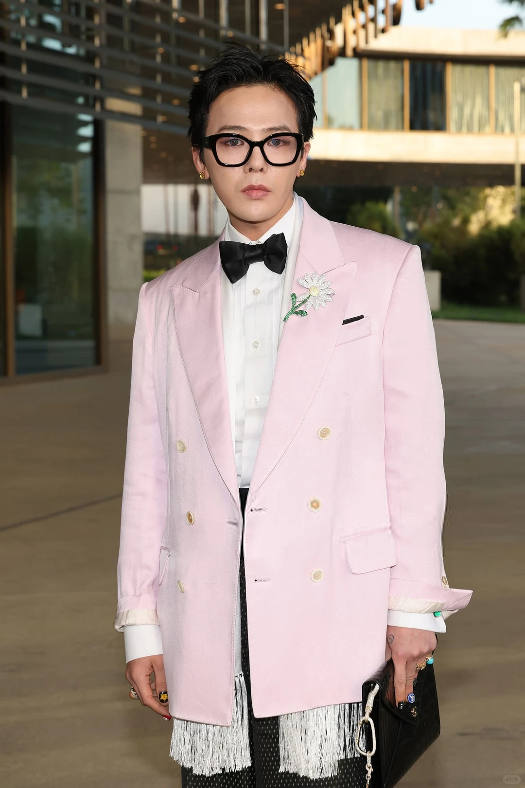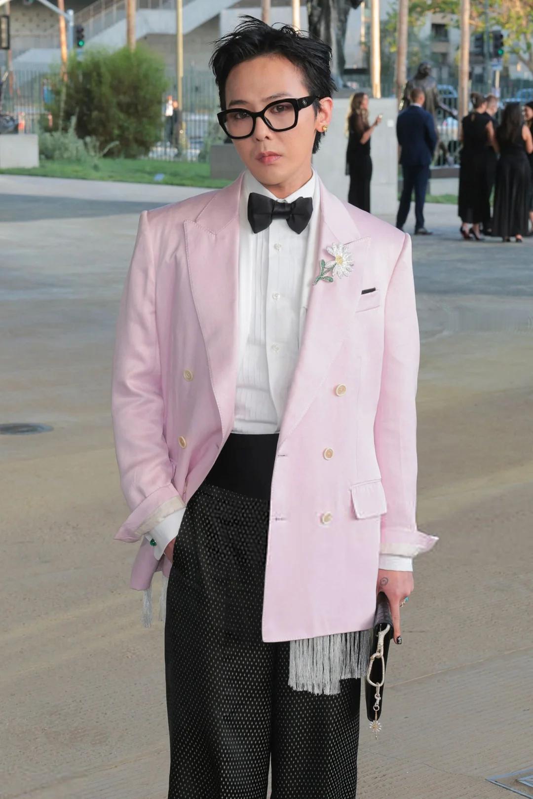 权志龙在洛杉矶出席活动,粉色西装造型