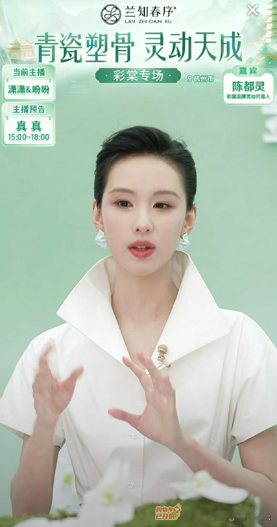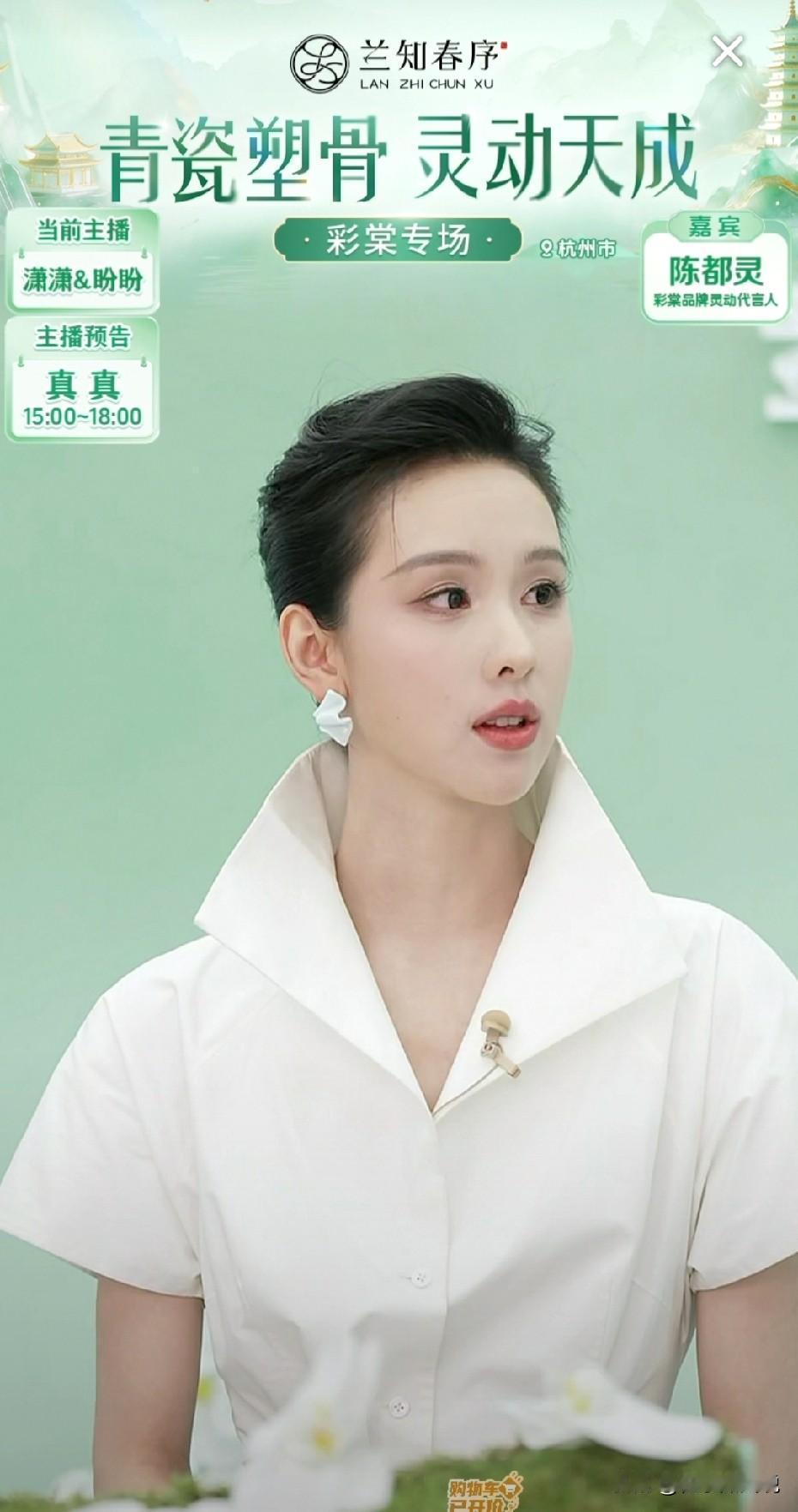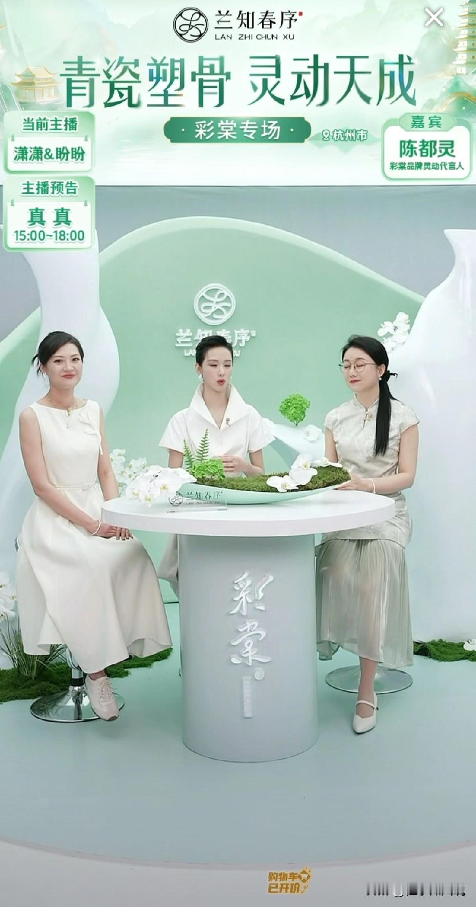 眼前潇潇、盼盼和嘉宾陈都灵,像是从古代走到我们眼前的美女,端庄的妆容,中国风的服饰,让人眼前一亮。