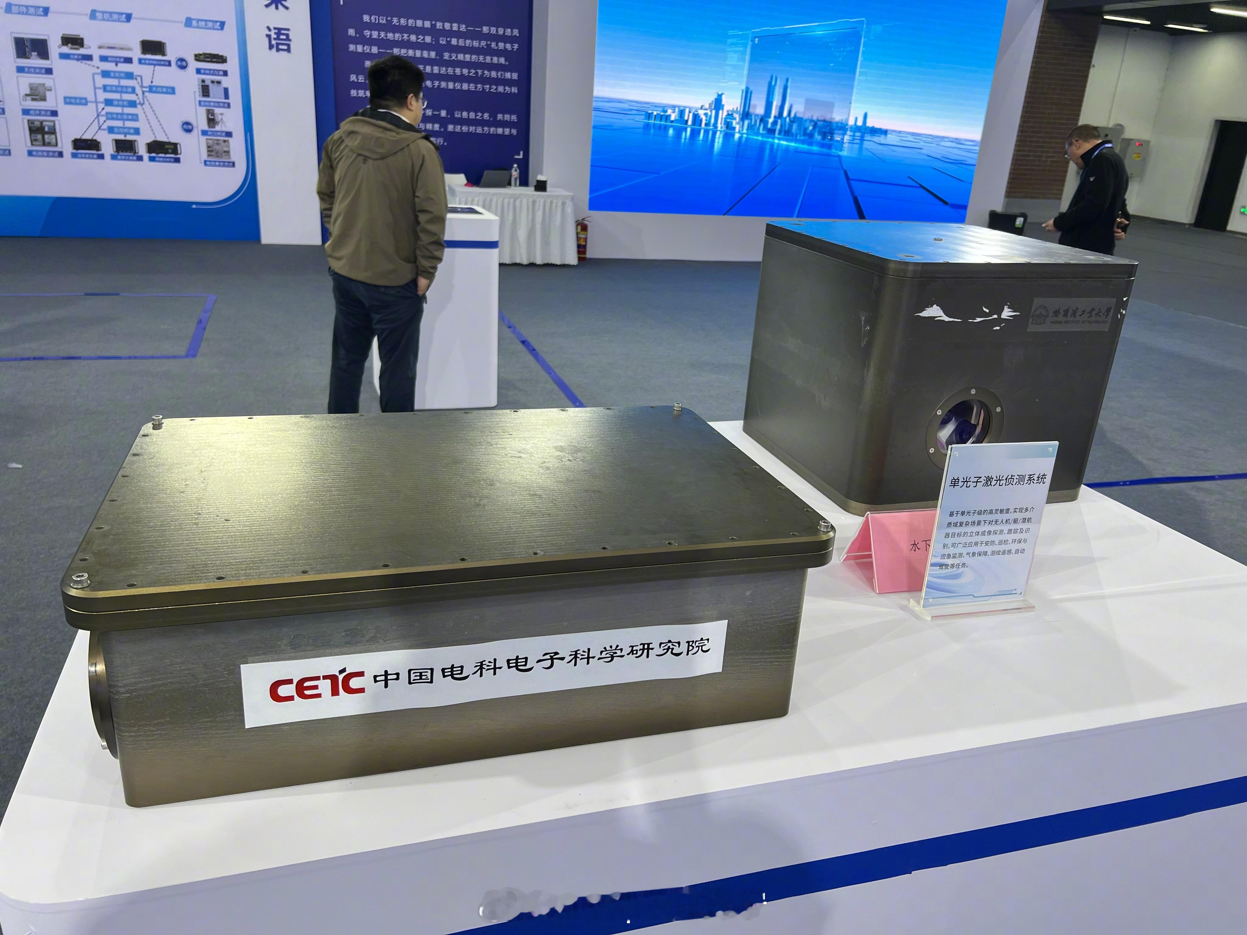 雷达未来大会感知未来无处不在的雷达科技 今天还展出了一个挺酷的技术——水下单光子成像。听起来高大上?其实就是:用极其微弱的光,在浑浊的水里“看”到远处的小目标,比如潜标、水下设备这些。传统办法要么看不清,要么被水散射干扰成一片模糊,但这个技术走的是“以弱胜强”的路子——单光子探测器灵敏到能捕捉单个光子,用极低能量的激光就能实现远距离、高分辨率成像。展会上展示的这套样机,主要针对沿岸浅海水下潜标等小目标的远距离、高分辨率探测需求。参数方面:激光脉冲重频1-5kHz,脉宽600皮秒,平均功率175mW。整机总重70kg,采用像素扫描式成像,扫描像素数可以根据需求设置。核心探测器SPAD在532nm波长下光子探测效率高达51%,时间分辨率能做到1皮秒——这精度,头发丝级别的距离变化都能测出来。实验水池条件下,最远探测距离、50米处的距离分辨率和横向分辨率目前图上还没填具体数字,但从行业进展来看,类似技术已经能做到横向5厘米、距离2.5厘米级别的高清成像。海试条件下的最大探测距离也待公布。总的来说,这项技术就是给水下安防和探测装上了一双“透视眼”,在浑水里也能看清远处的小目标。等具体数据出来,效果会更直观。