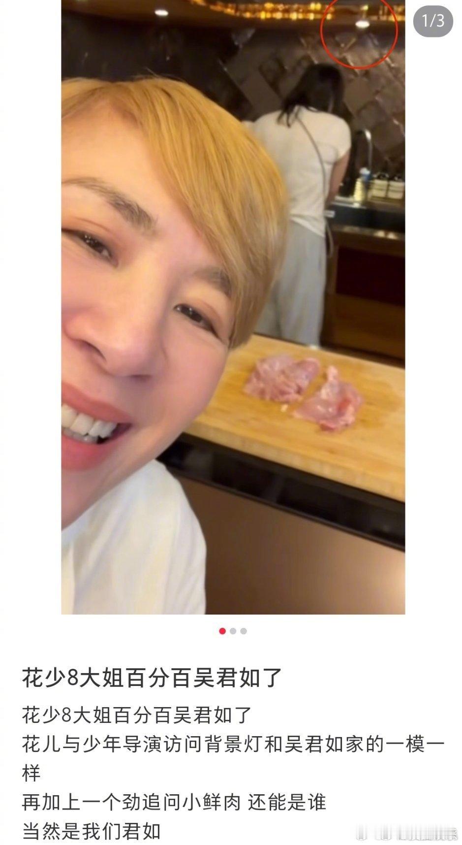 花少8姐姐三句不离小鲜肉曝花少8大姐是吴君如花少导演发布了新一季花少8邀约大姐的vlog,被眼尖的网友发现背景布置与吴君如家里极为相似,猜测本季大姐是吴君如。视频里大姐三句不离小鲜肉,还提到自己最喜欢王嘉尔,导演:他忙演唱会没空
