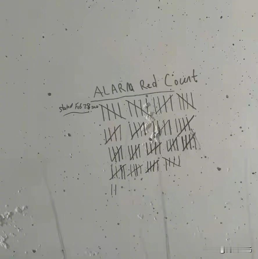 疑似美军士兵在中东美军基地的防空洞里,画海绵宝宝里的蟹老板,来记录伊朗导弹和无人机的空袭次数。