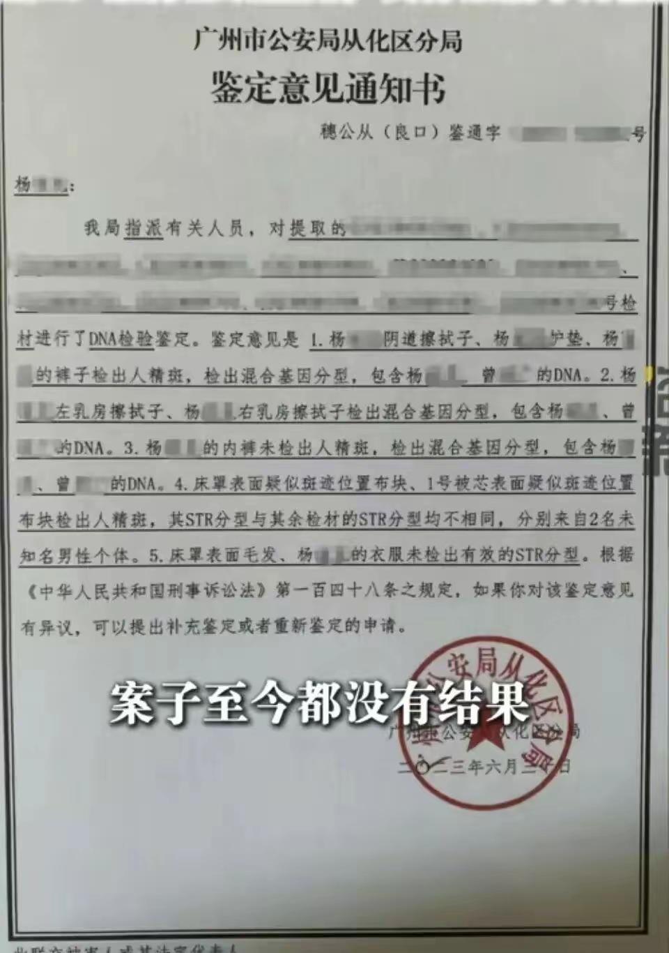 2023年6月,广州杨女士报警称遭强奸,警方立案后刑拘嫌疑人14天,因检方以证据不足不批捕变更为取保。鉴定检出双方DNA,杨女士称案件未结未撤,对方已出国,她绝望到写遗书轻生。警方表示案件已办结,详情不便透露,引发广泛热议。 女性遭强奸