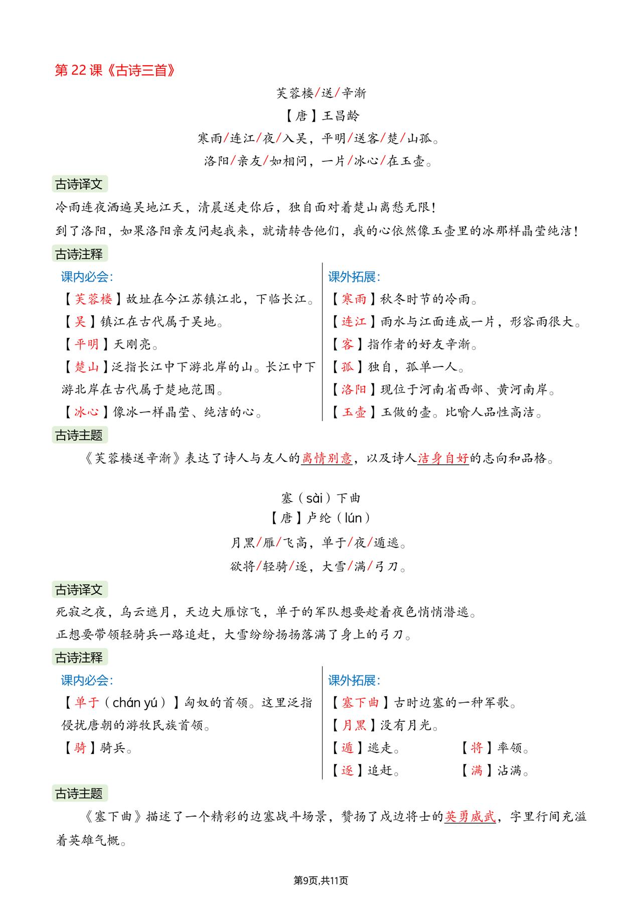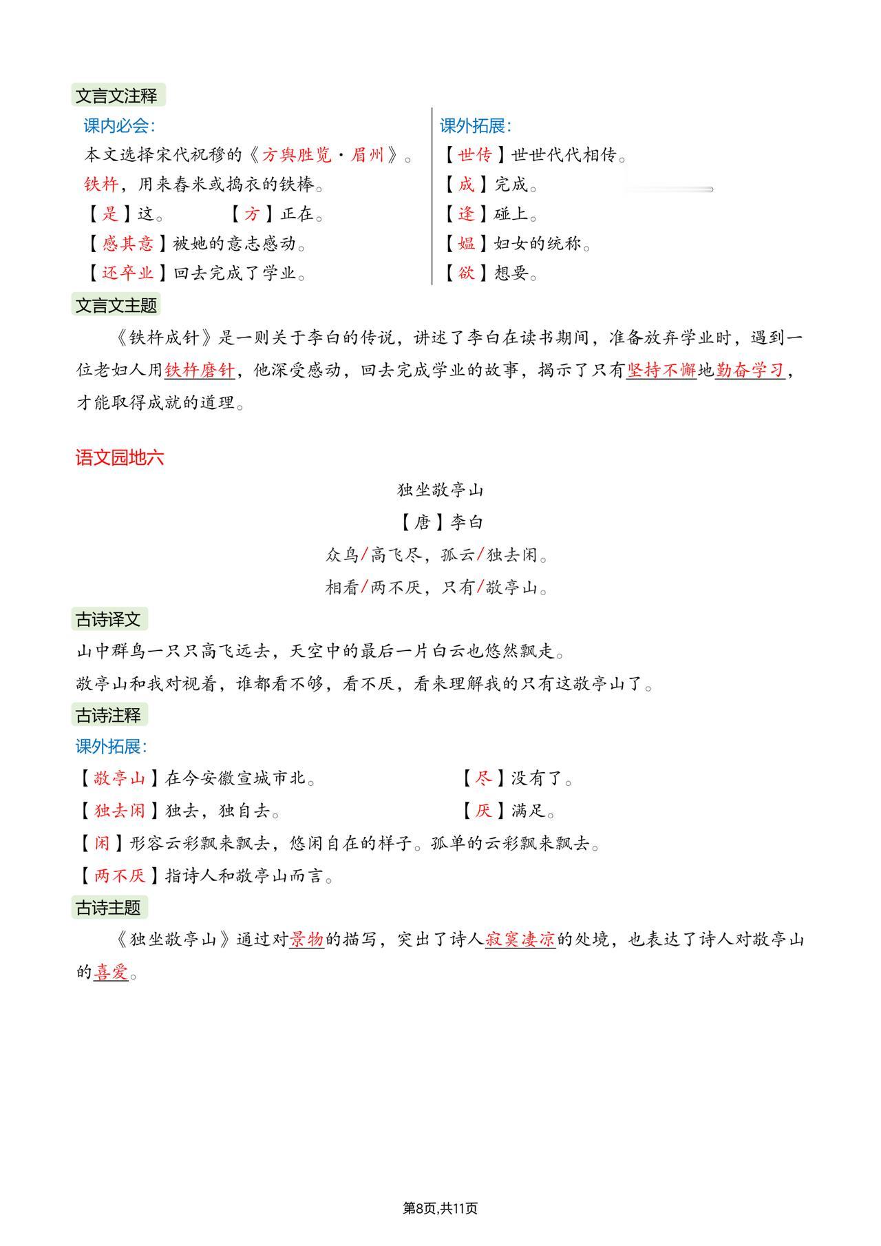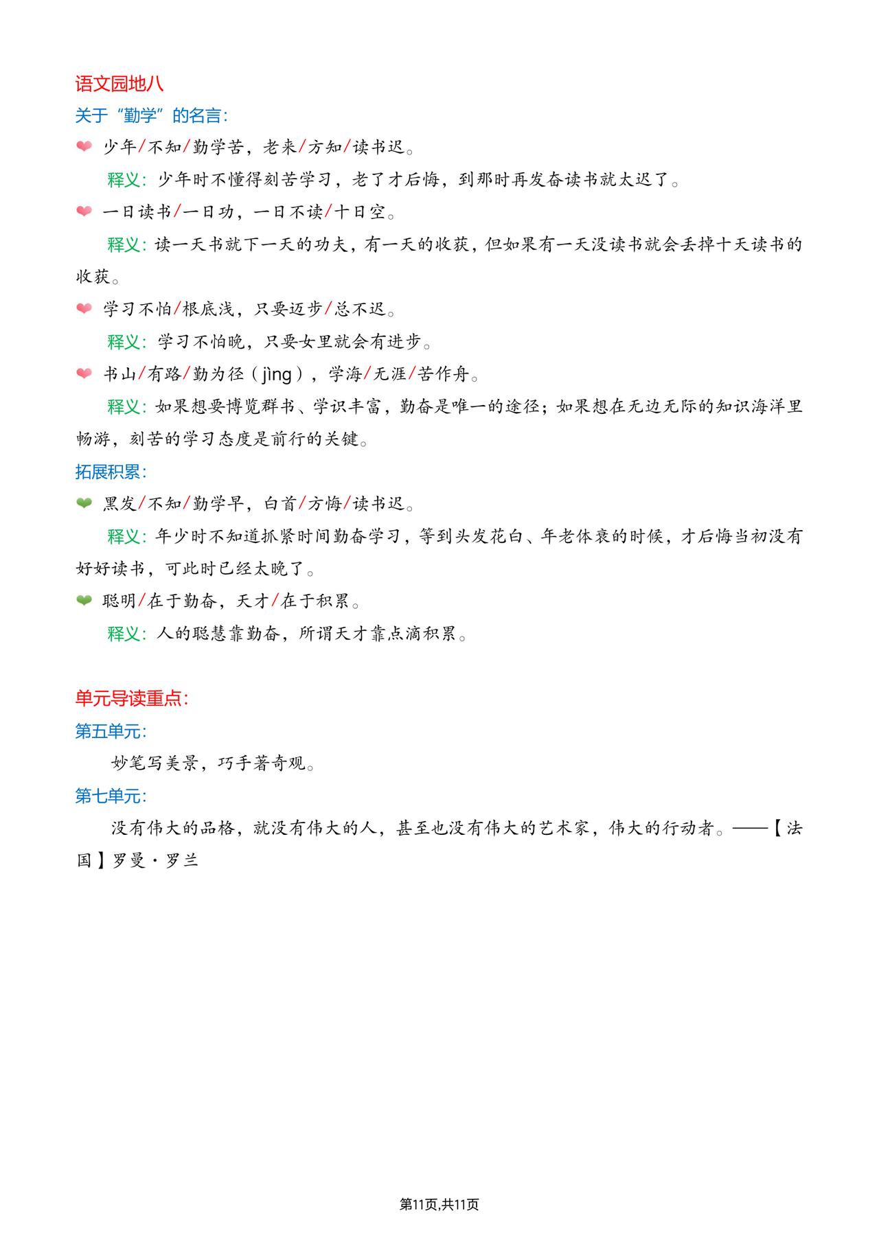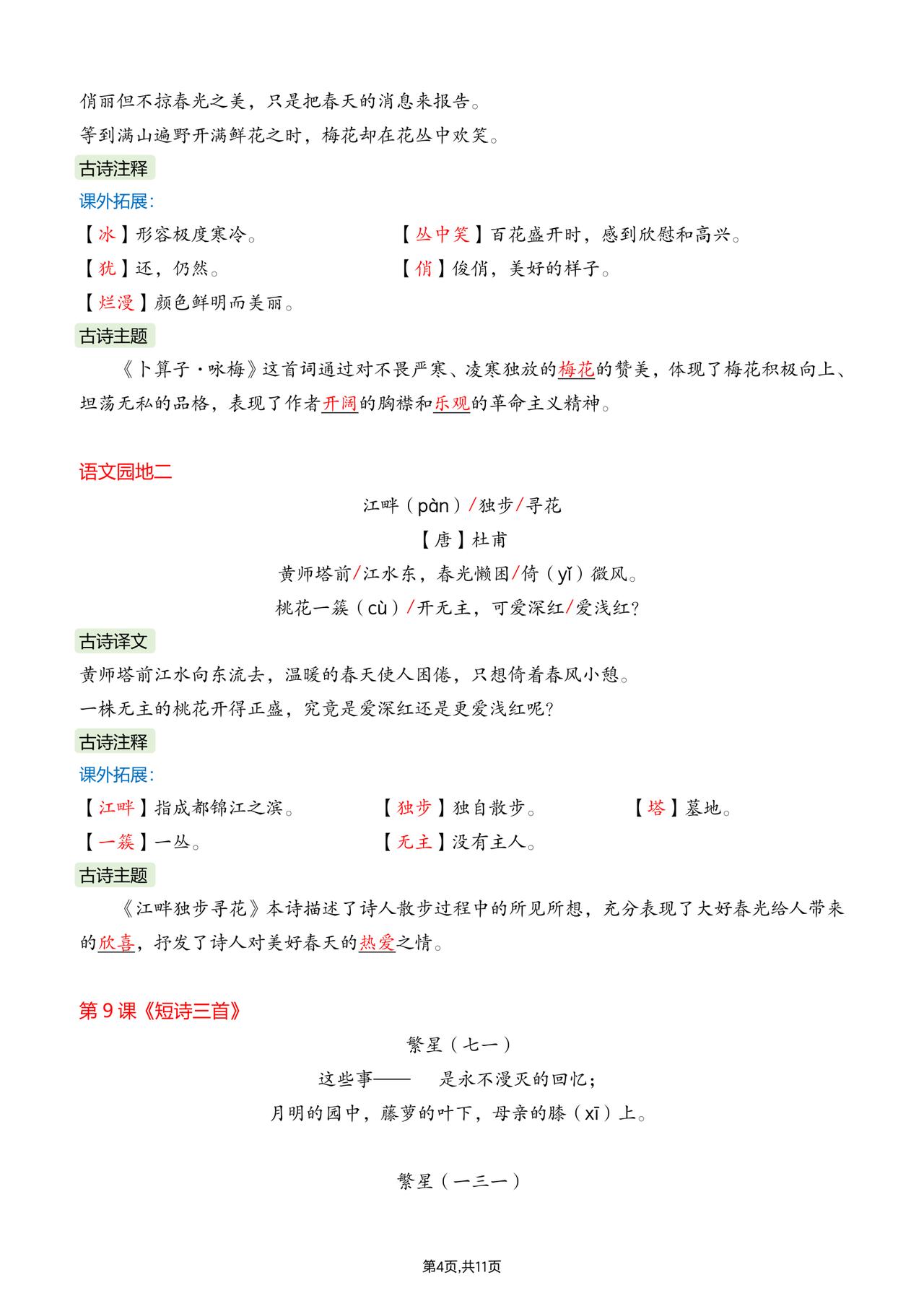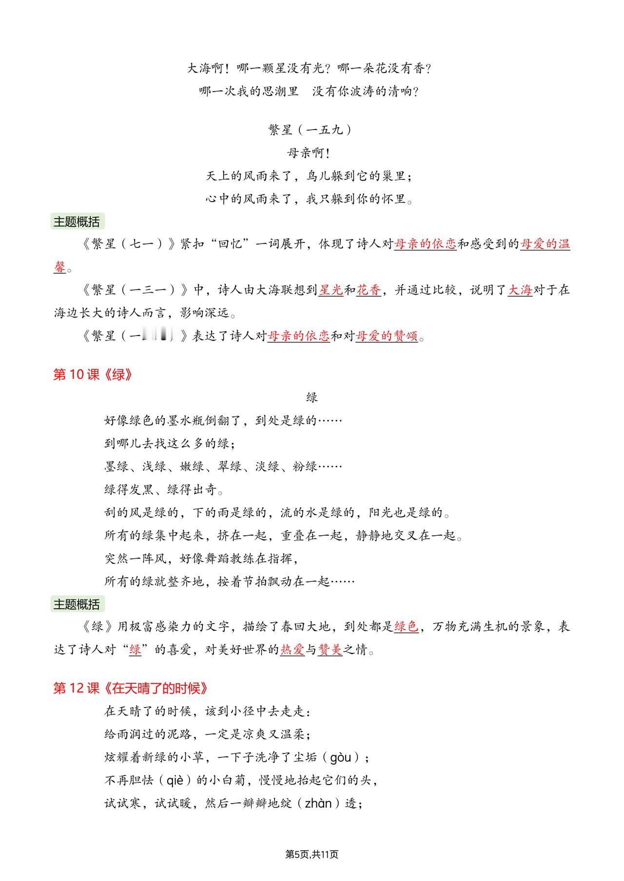 26春四年级下册语文,课文必背内容汇总(11页),收藏备用