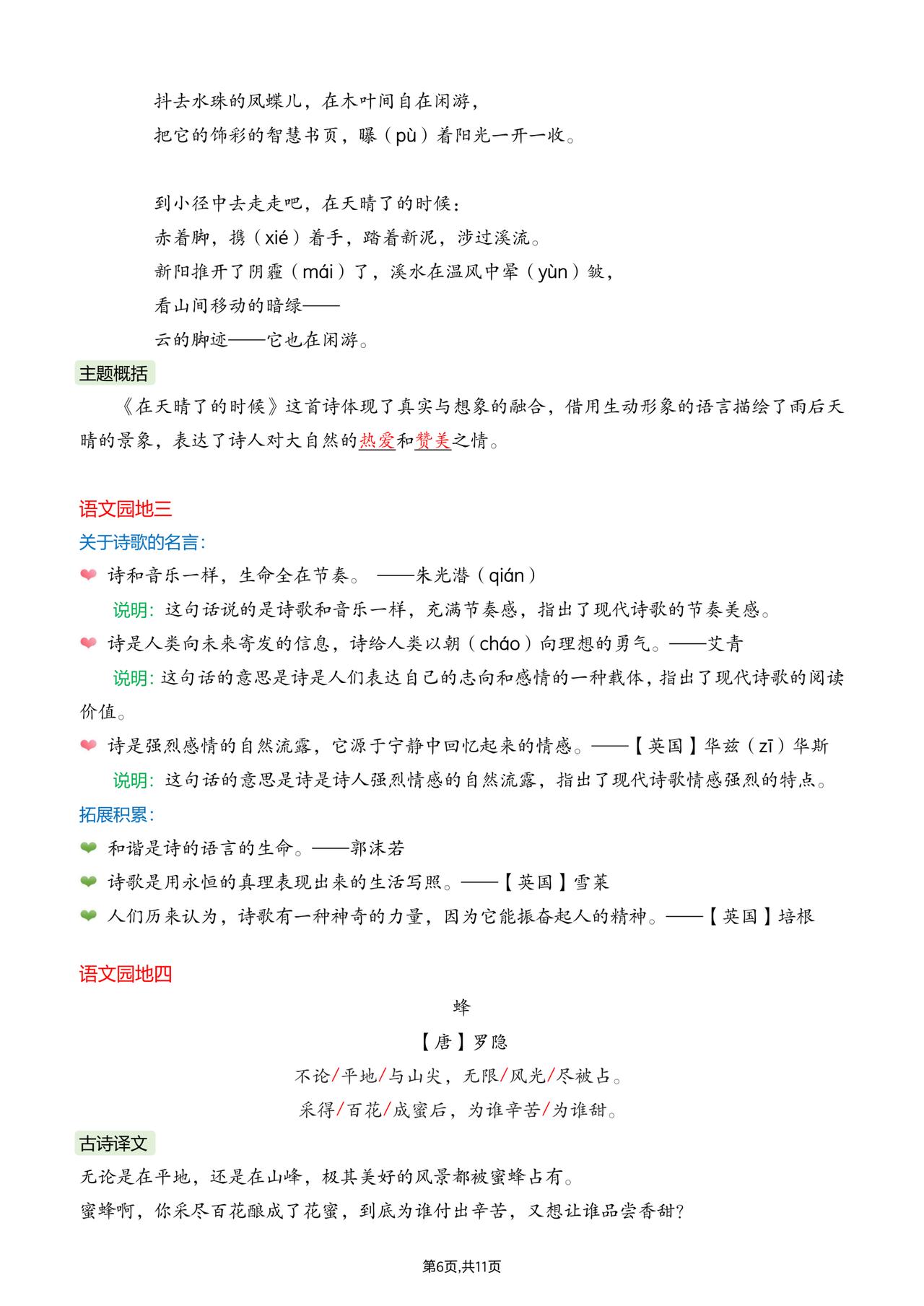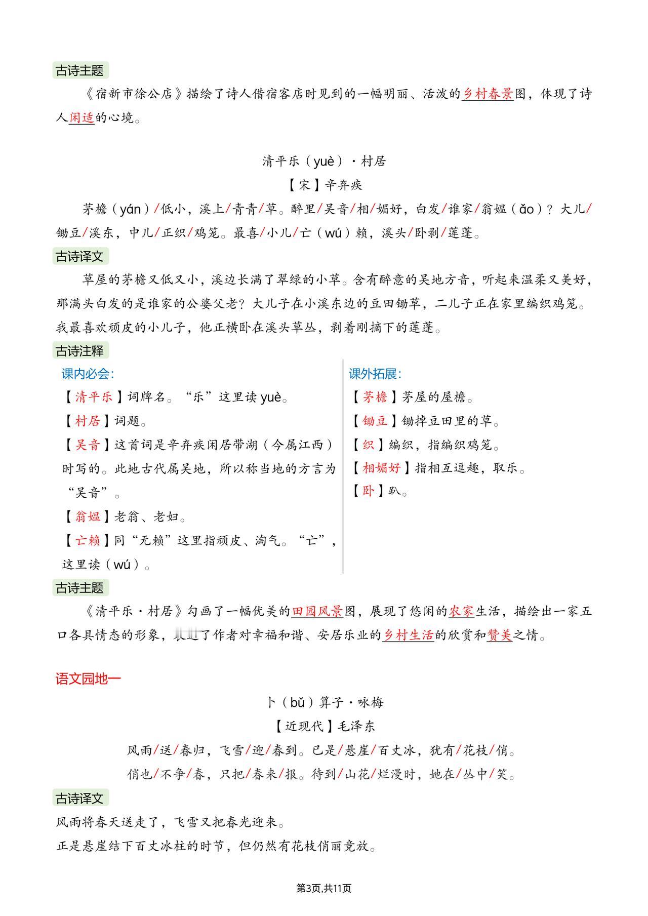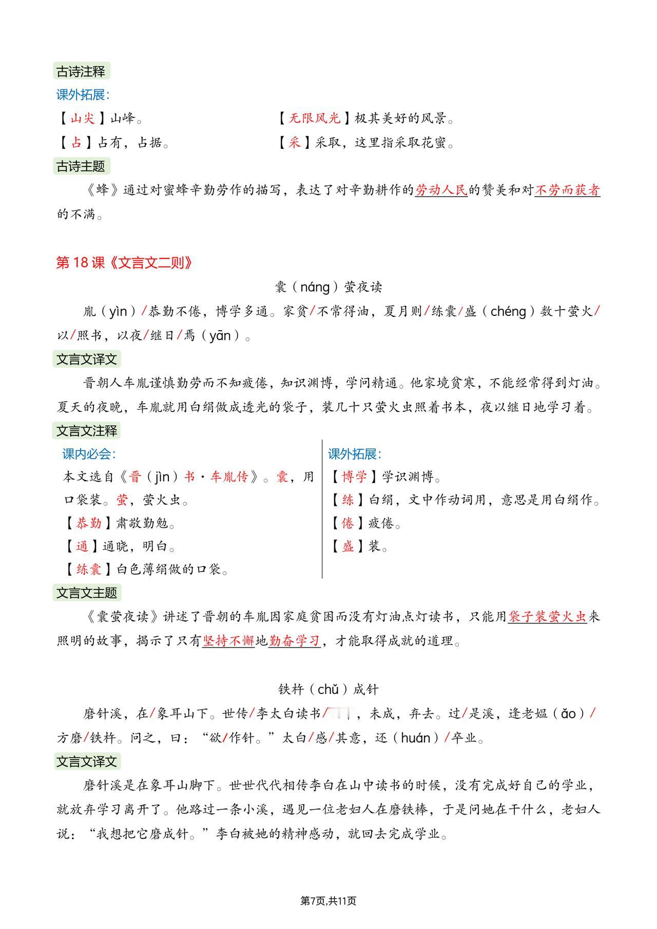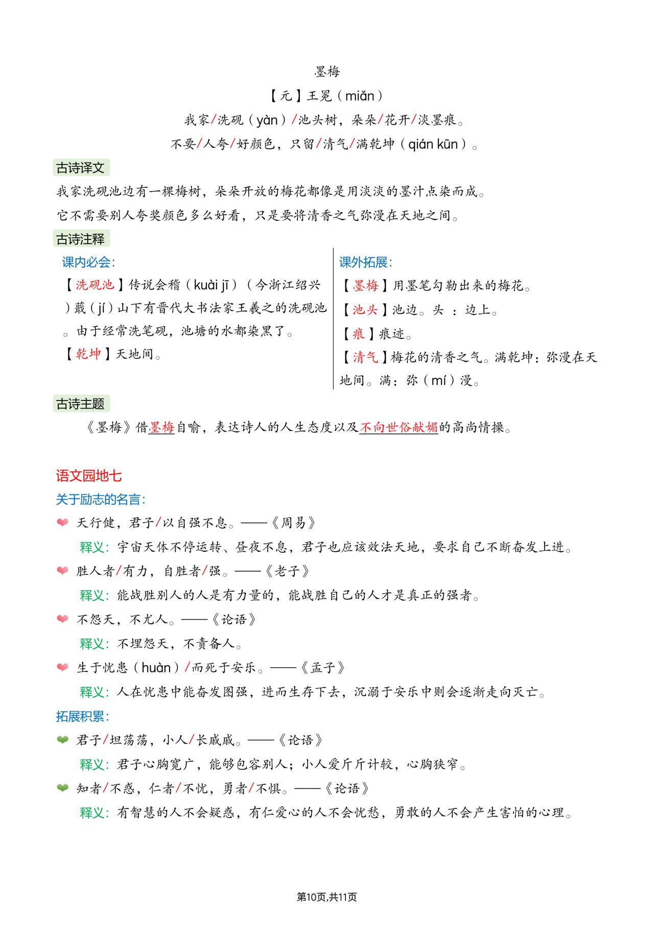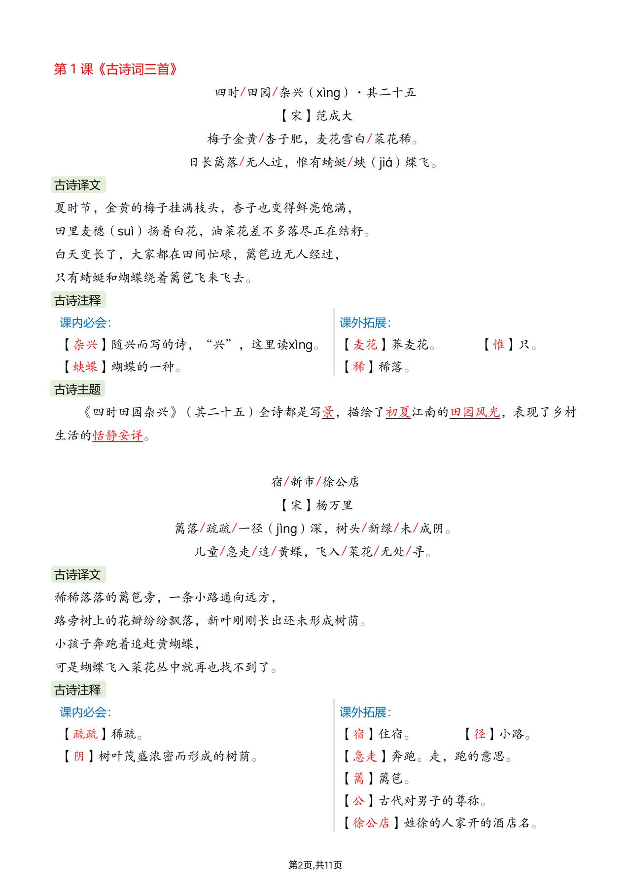 26春四年级下册语文,课文必背内容汇总(11页),收藏备用