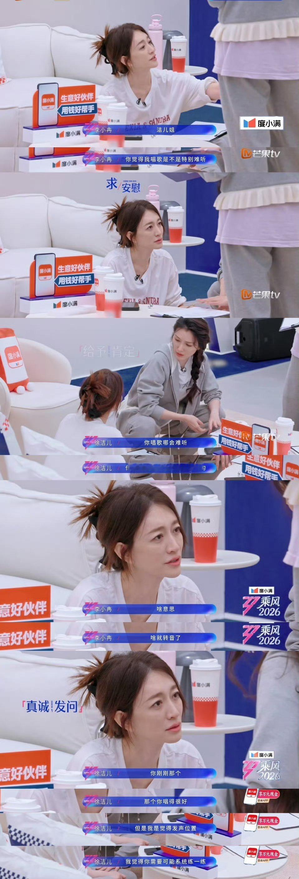 李小冉 跑调是因为缺心眼呗阚清子和徐洁儿本来在暖心安慰李小冉,结果聊着聊着三人一致得出结论:姐姐唱歌跑调,是因为缺心眼哈哈哈。乘风2026