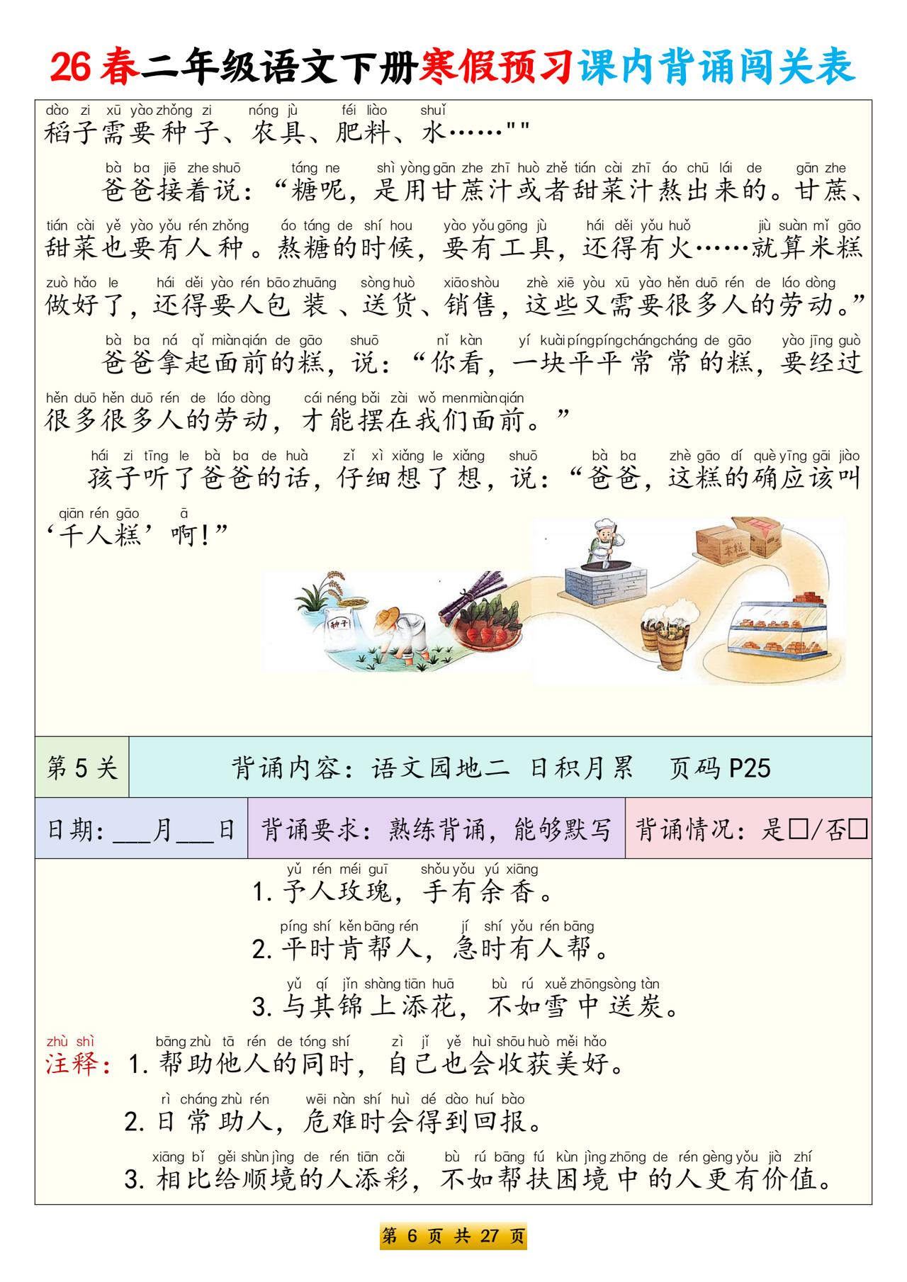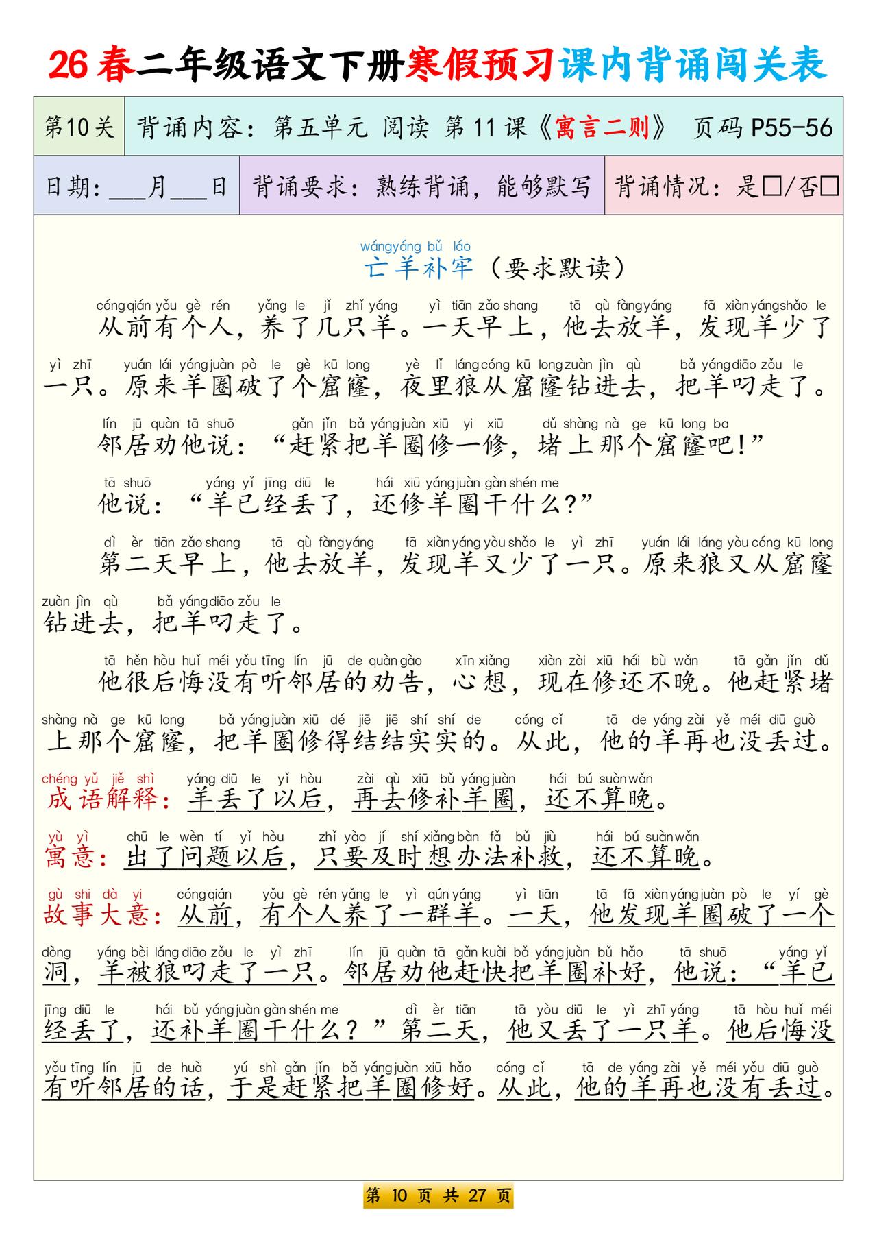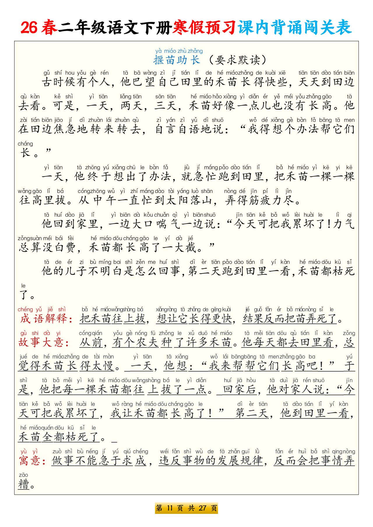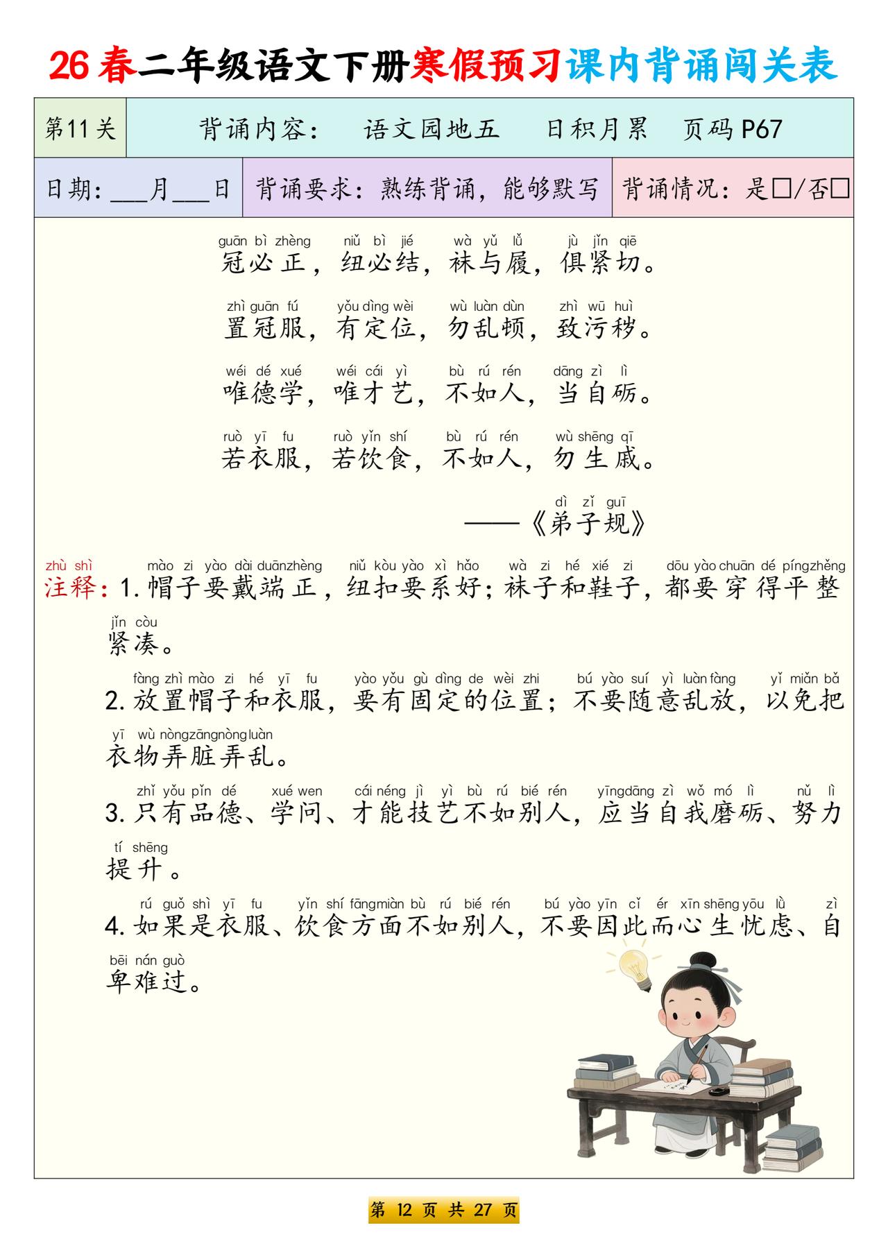 26春二年级下册语文课内背诵表(拼音版)27页,收藏备用