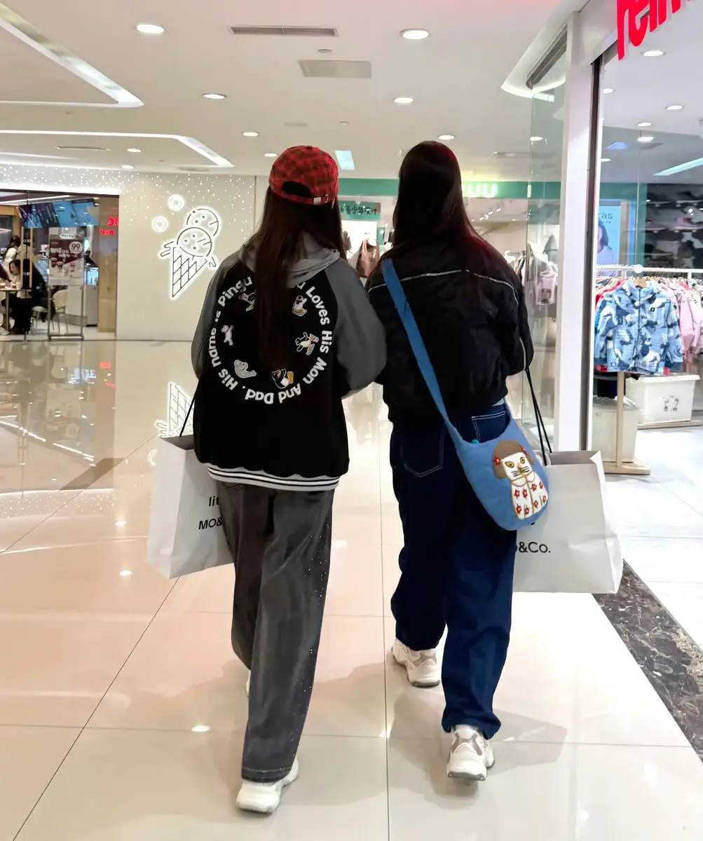赵子琪带俩女儿逛街 火星木星高挑出挑气质随妈