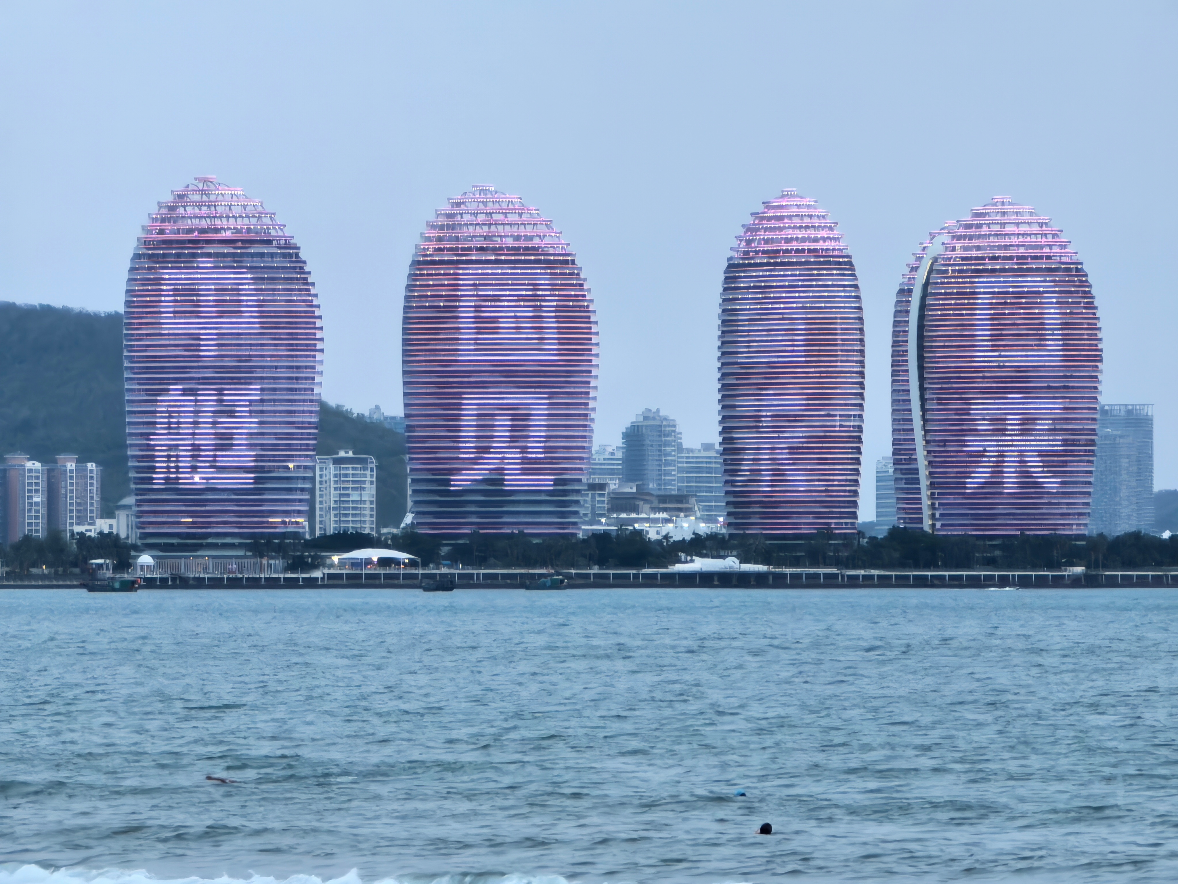 这次没有去景区,真正度假了一天,看着无敌海景睡觉!舒服!太阳落山了去泡海澡,还看到一个海里探测金属的人,有一份收入在三亚生活,是个不错的选择! 三亚·三亚湾