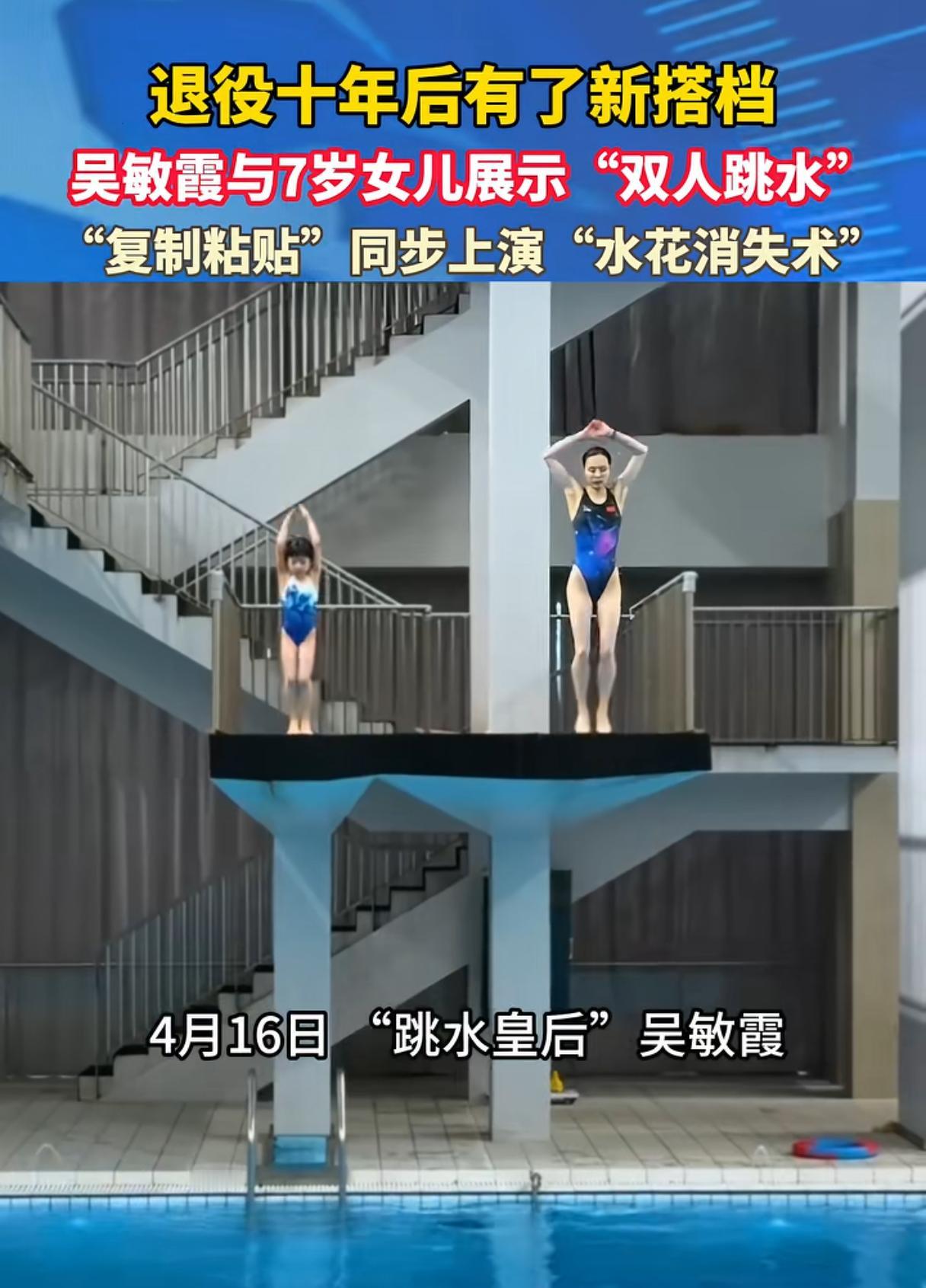 吴敏霞真的舍得让女儿吃苦。跳水那么苦,摔那么疼,西西今年才7岁,换牙期都没过,吴敏霞已经带着她一起跳了。