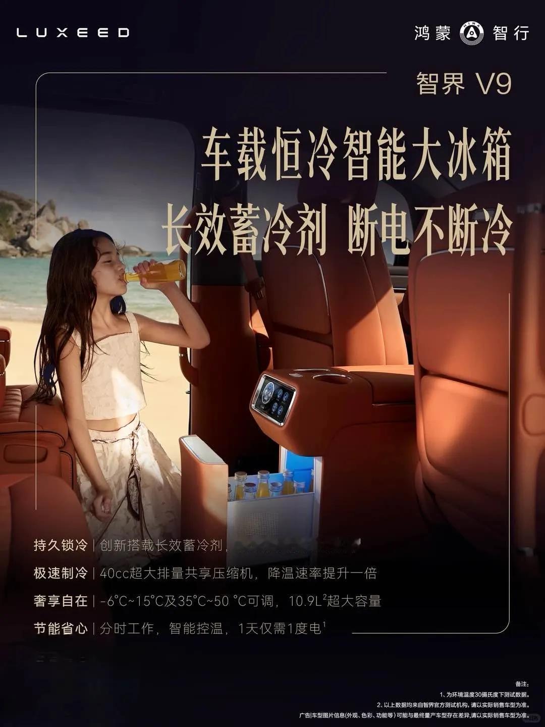 谁懂啊,露营最扫兴的就是带的冰饮变常温,生鲜食材放坏。现在智界V9直接把"移动冷库"搬上车了。智界V9将搭载恒冷智能温控大冰箱,彻底解决户外用电难题。离车自动运行24小时,后续OTA还能支持运行到电量耗尽,露营过夜完全不用愁。10.9L超大容积能装8瓶500ml矿泉水,前后双向取放超方便。支持-6℃到15℃冷藏和35℃到50℃保温,冰啤酒、热咖啡随时安排。而且能耗极低,开一天冰箱才耗1.8度电,对续航几乎没影响。再加上1250km+的综合续航和双腔空气悬架,智界V9简直是为长途自驾量身打造的完美座驾。
