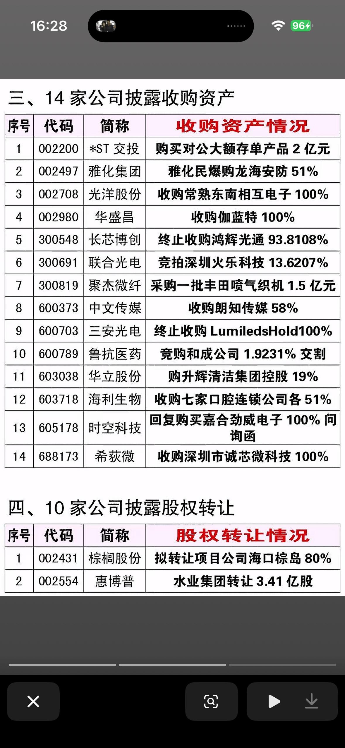 4月18日周六资产重组、实控人变更、股权转让14家公司披露收购资产,10家公司股权转让,市场动向一览