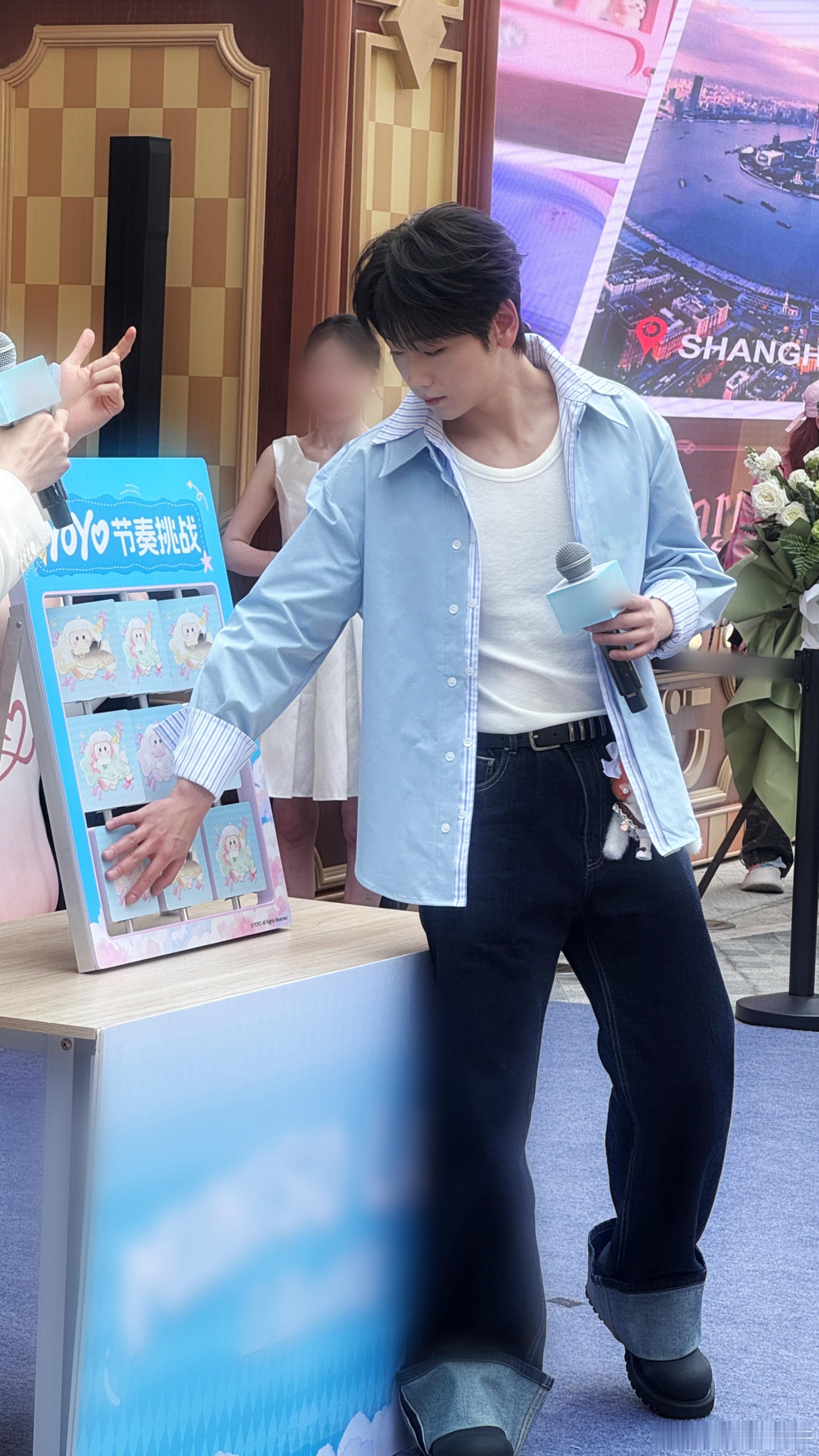 崔雨鑫在三亚续写炽热🌟崔雨鑫三亚续写炽热魅力,蓝衬衫少年感爆棚,街头大方营业超