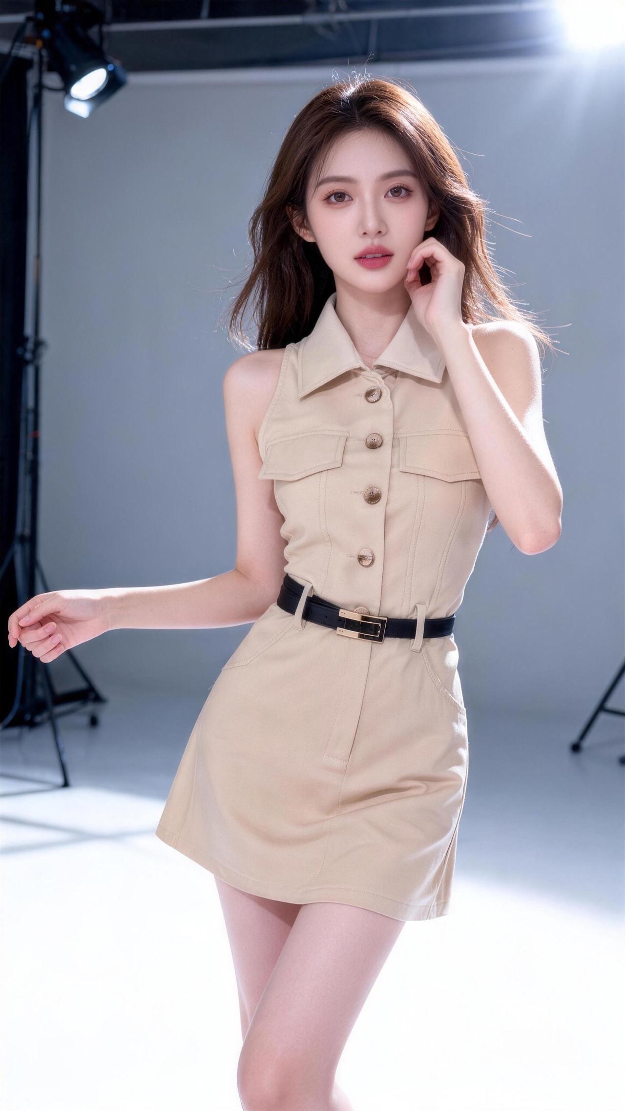 柔美漂亮的衬衫吊带裙
