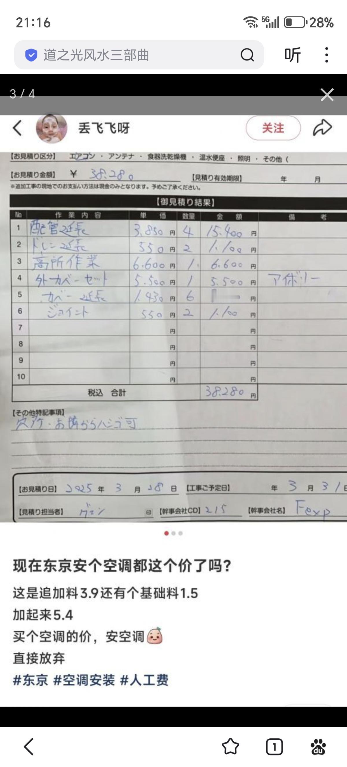 注意这还不算安装费,安装费还要至少5.4万日元(图三)