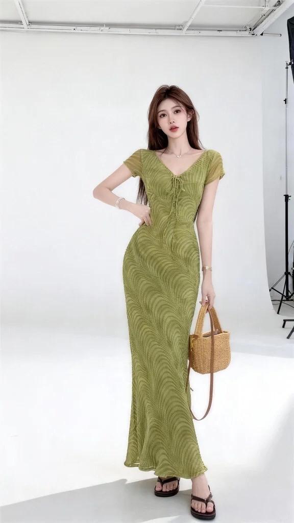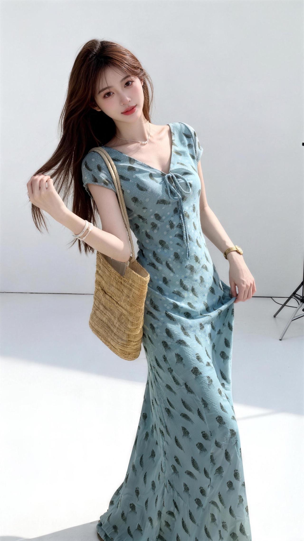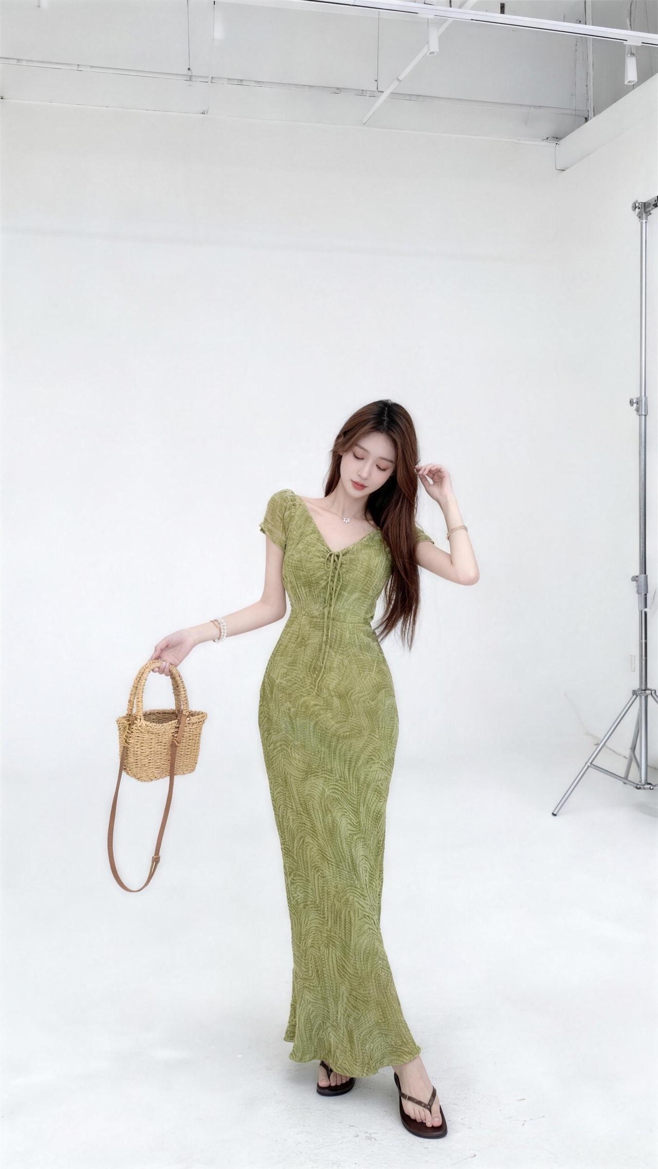 五一到啦~度假小裙必须安排上舒适度假裙 嫩绿色连衣裙 绿色碎花连衣裙 荷叶边长裙
